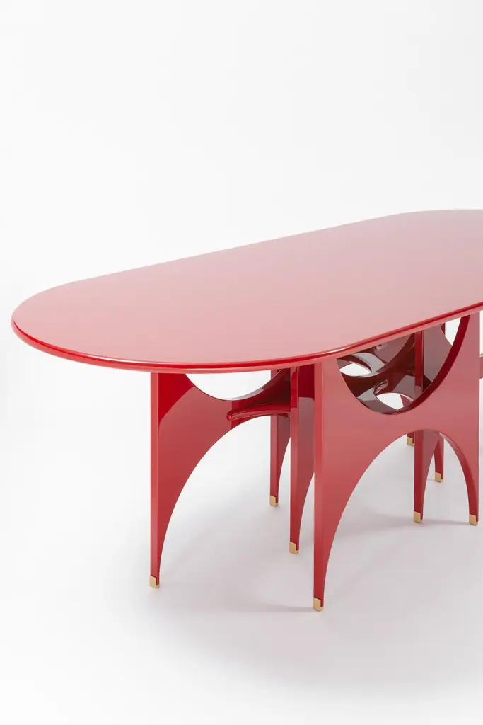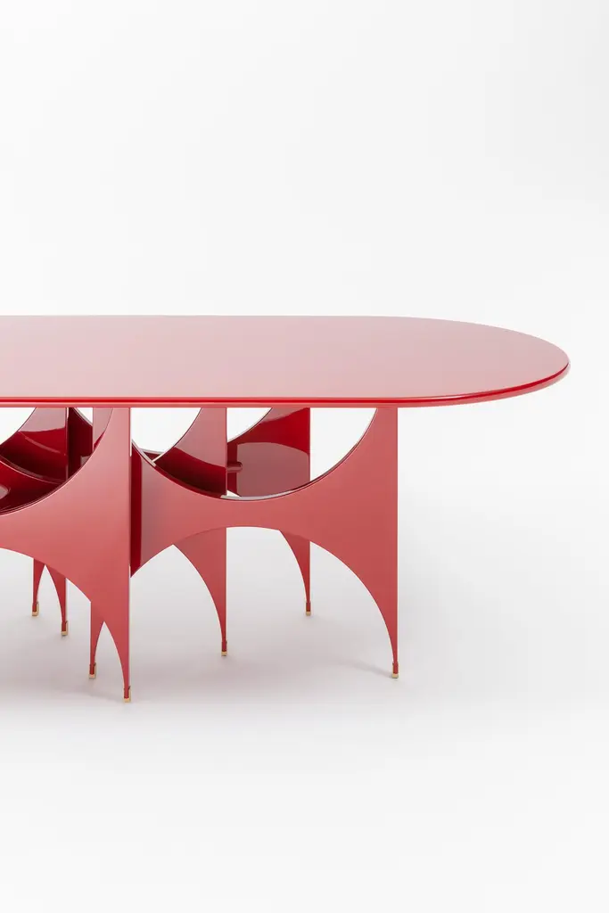 Contemporary Oblong Table In Red Butterfly By Hannes Peer