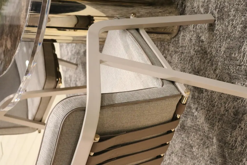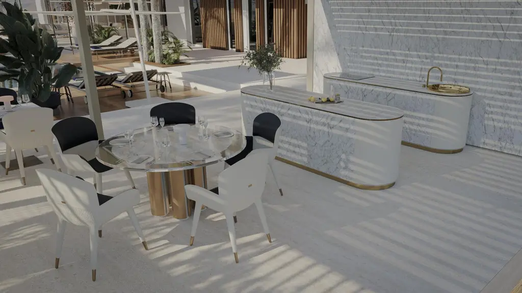 Moon Dining Table The Moon dining table is a bold piece designed to transform any outdoor dining space. With elegant lines and an oval marble top, it evokes the serenity of the Moon, while metallic details and a robust base ensure durability and authenticity. A choice that elevates design and decor, creating unique moments in your dining space.All Myface materials are from premium suppliers, engineered to offer the best performance possible outdoors.Water, Mold, Mildew, UV and Fading resistance are some of the characteristics that you can expect from both materials,that are available in a wide array of colors and patterns.