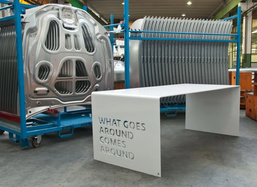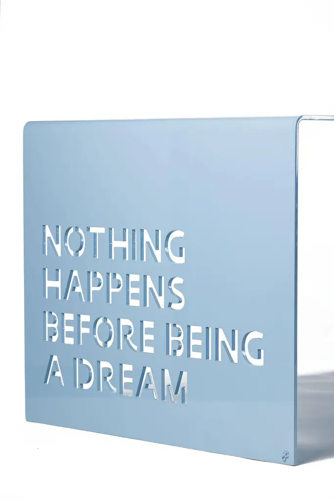 A thin aluminium sheet masterly processed bends to give shape to a table desk with neat lines and strong character.A table with thousands facets made precious either by decorations and engravings, or by aphorisms expressing your personality. Plex, a product that tells every day every turn your life takes.Plex could be customized as your desires.Pricing excludes VAT.