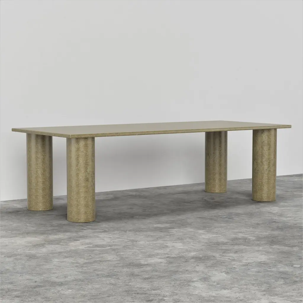 The table is manufactured of continuous and aligned glass fiber-reinforced resin composite, a highly resistant and durable material. Meticulously handmade by skilled artisans one piece at a time.The table emphasize the beauty of brutalism with its simple form and natural texture.Pictured materials: Aged natural fiberglass reinforced resin.Table is also offered in matte white finish and matte grey finish.Weight: 85 kg.We do our best to expedite production and to ship and deliver product within the listed lead time, however current lead times might be longer due to global shipping backlog and delays. These delays are out of our control and cannot be a reason to cancel an order.