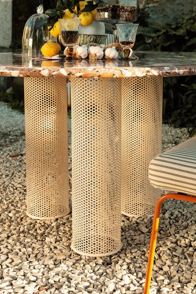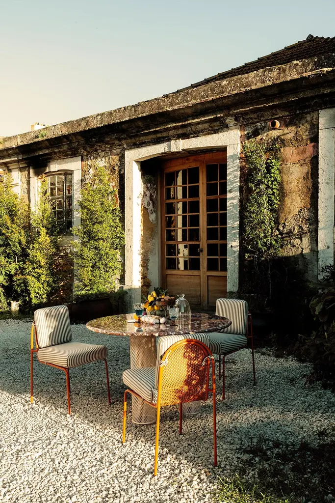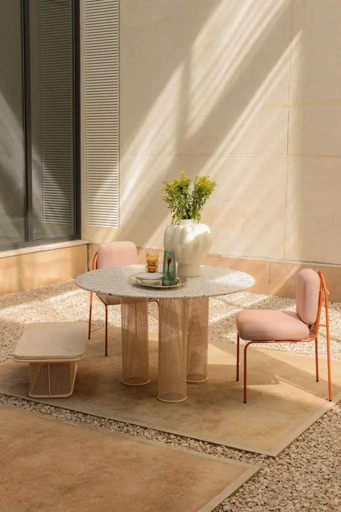 Our newly unveiled collection is meticulously handcrafted in Portugal. Departing from conventional norms, weembrace a palette of unconventional materials, including different marble stones, an array of Merrazzo tones,robust metals and enduring ceramics to create a thoughtfully curated collectionThis collection is a testament to versatility, seamlessly blending sophistication and comfort to elevate theoutdoor space.Designed to celebrate the outdoors, each piece in our collection embodies the symbiosis of elegance andfunctionality. Whether indulging in stylish dining or serenely lounging, this ensemble is a homage to the art ofoutdoor living.outdoor usage: outdoor lacquered metal