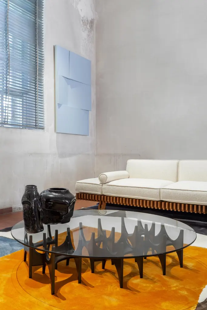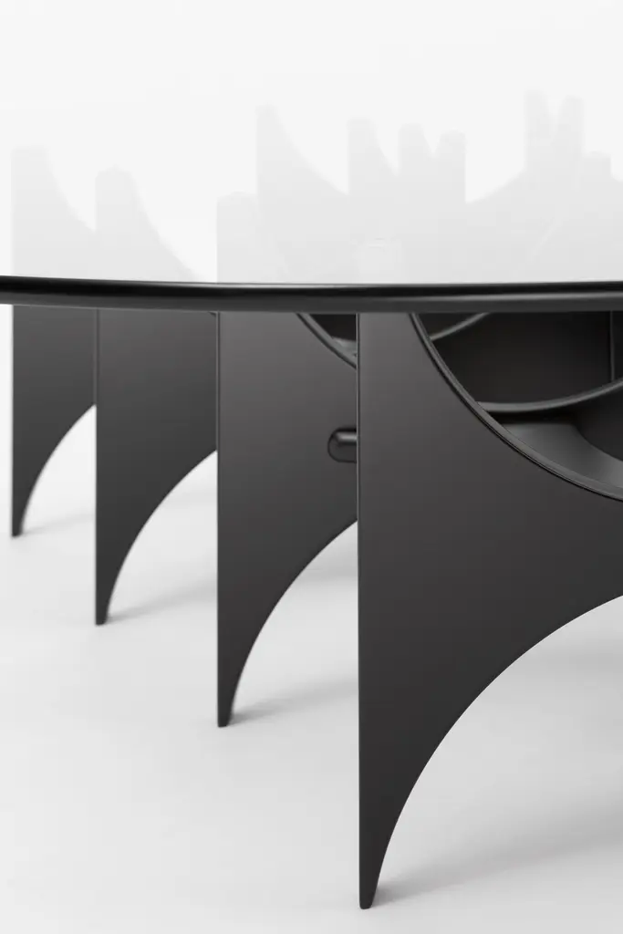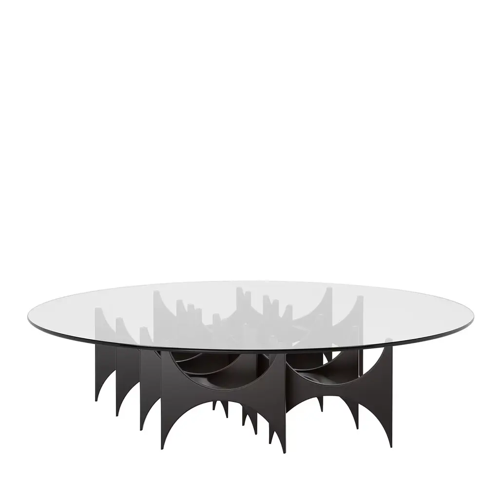 The 'Butterfly' coffee table is also a new entry to the 'Paesaggio' collection. Hannes Peer translated the biomorphic aesthetic of his 'Butterfly' console into a low table with equally distinctive organic forms. The top is made of tempered glass, the structure is available in all colors, the top in transparent or fumè glass.Costumized sizes, colors and top available on request.