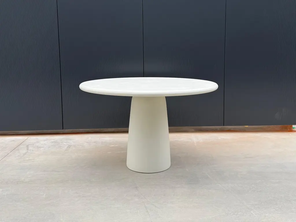 A contemporary Belgian design, handcrafted in natural plaster with a textured, earthy character. The surface is stain-resistant, easy to maintain, and pleasantly soft to the touch, unlike the cold feel of natural stone.Standard version for indoor use. Outdoor finish available on demand. (+20%).Inspired by the timeless menhir form, upright stones placed by prehistoric people in Celtic regions 4000-6000 years ago, the table carries a sense of monumentality and quiet strength.Each piece is built on a wooden base and finished by hand with multiple layers of Mortex®, a premium plaster known for its durability in demanding applications such as bathrooms, stairs, and swimming pools. Mortex contains no epoxy or polyurethane resins.The plaster is applied using the a fresco method: Each layer is applied before the previous one has fully set, creating a perfect bond and a rich, seamless surface. The result is a tactile object with depth, warmth, and individuality. Subtle irregularities, natural shades, and variations are the signature of the craftsman, ensuring that no two tables are ever the same.Thanks to its understated, versatile character, the Menhir Dining Table integrates beautifully into a wide range of interior styles: from wabi-sabi and japandi to brutalism, minimalism, or contemporary design.Available in more than 80 colours, with endless options in size and shape. Samples are recommended, as slight variations in tone and texture are inherent to the artisanal process and the living nature of the material.Colour: BM01 NaturalDisclaimer:The colours shown may differ from the colours of the applied product. We recommend ordering a sample. Please keep in mind that differing effects and nuances are to be expected when you compare the finished product to the provided sample. This is the result of the application process and the characteristics of the material. Due to the handmade character dimensions may vary by up to 1.5 cm.The customer is responsible for ensuring that products are used, handled, and maintained strictly in accordance with BB UNITED BV’s instructions and guidelines, provided with the product and/or available on demand. Warranty and liability shall not apply in cases of improper use, lack of maintenance, exposure to unsuitable environments, or use of cleaning products or methods not approved by BB UNITED BV.While certain products are treated and intended for outdoor use, BB UNITED BV cannot guarantee that products will remain unaffected under all climatic or environmental conditions. The customer is responsible for ensuring suitable placement, protection, and maintenance adapted to local weather circumstances. BB UNITED BV shall not be liable for weather-related damage or natural wear and tear.BB UNITED BV shall under no circumstances be liable for indirect, consequential, or incidental damages, including but not limited to shipping costs, customs duties, import taxes, installation costs, third-party claims, or loss of profit.