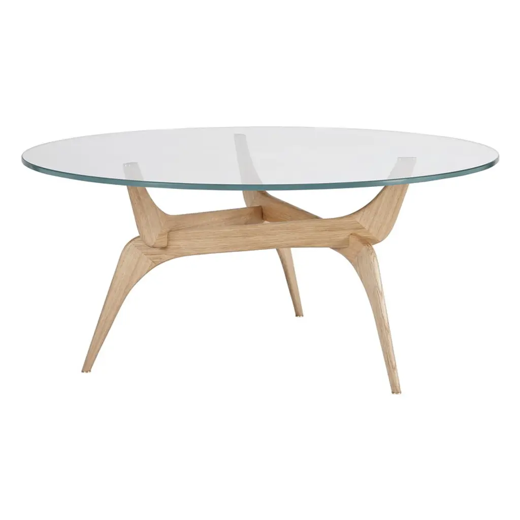 Contemporary Round Table 'Nx', Wooden Base And Glass Top