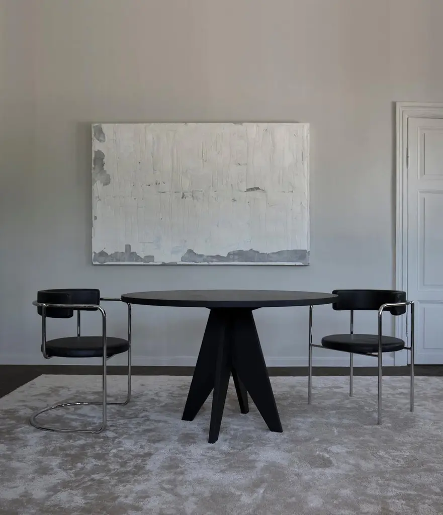 Round table 'POSE' by Friends & Founders designed by Ida L. Hildebrand for Friends & FoundersModel on picture:- Dimensions: H. 75 x D. 140 cm- Wood finish: Black oakDimensions available:D. 100 / D. 120 / D. 140Wood finishes available:Black oak / Smoked Oak / Natural OakTable featured in solid wood with a rectangular top. Available in solid oak with an oiltreated solvent-free satin finish.---IDA LINEA HILDEBRANDCreative Director and Co-founder of Friends Founders Architect and designer Ida Linea Hildebrand was born in Stockholm in 1978. The daughter of a cabinet maker, she continued the family tradition by choosing a path that led her to furniture design. In 2008 Ida Linea graduated from the distinguished Stockholm art academy Konstfack (the University of Arts, Crafts, and Design). She earned a Master’s Degree in Fine Arts within the field of Interior Architecture and Furniture Design.After studying, Ida Linea moved to Copenhagen – a mecca for contemporary furniture design – and there her dream of becoming an independent designer took shape. She met future husband and co-founder of Friends & Founders, Rasmus Hildebrand, and the couple established a studio in 2013. At that creative space in the north of Copenhagen the universe of Friends & Founders’ design took shape.