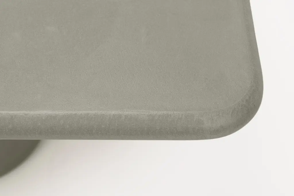A contemporary Belgian design, handcrafted in natural plaster with a textured, earthy character. The surface is stain-resistant, easy to maintain, and pleasantly soft to the touch, unlike the cold feel of natural stone.Standard version for indoor use. Outdoor finish available on demand. (+20%).Each piece is built on a wooden base and finished by hand with multiple layers of Mortex®, a premium plaster known for its durability in demanding applications such as bathrooms, stairs, and swimming pools. Mortex contains no epoxy or polyurethane resins.The plaster is applied using the a fresco method: Each layer is applied before the previous one has fully set, creating a perfect bond and a rich, seamless surface. The result is a tactile object with depth, warmth, and individuality. Subtle irregularities, natural shades, and variations are the signature of the craftsman, ensuring that no two pieces are ever the same.Thanks to its understated, versatile character, the table integrates beautifully into a wide range of interior styles: from wabi-sabi and japandi to brutalism, minimalism, or contemporary design.Available in more than 80 colours, with endless options in size and shape. Samples are recommended, as slight variations in tone and texture are inherent to the artisanal process and the living nature of the material.Colour: BM2032 Sage IntenseDisclaimer:The colours shown may differ from the colours of the applied product. We recommend ordering a sample. Please keep in mind that differing effects and nuances are to be expected when you compare the finished product to the provided sample. This is the result of the application process and the characteristics of the material. Due to the handmade character dimensions may vary by up to 1.5 cm.The customer is responsible for ensuring that products are used, handled, and maintained strictly in accordance with BB UNITED BV’s instructions and guidelines, provided with the product and/or available on demand. Warranty and liability shall not apply in cases of improper use, lack of maintenance, exposure to unsuitable environments, or use of cleaning products or methods not approved by BB UNITED BV.While certain products are treated and intended for outdoor use, BB UNITED BV cannot guarantee that products will remain unaffected under all climatic or environmental conditions. The customer is responsible for ensuring suitable placement, protection, and maintenance adapted to local weather circumstances. BB UNITED BV shall not be liable for weather-related damage or natural wear and tear.BB UNITED BV shall under no circumstances be liable for indirect, consequential, or incidental damages, including but not limited to shipping costs, customs duties, import taxes, installation costs, third-party claims, or loss of profit.