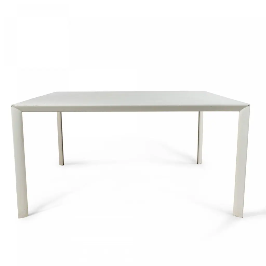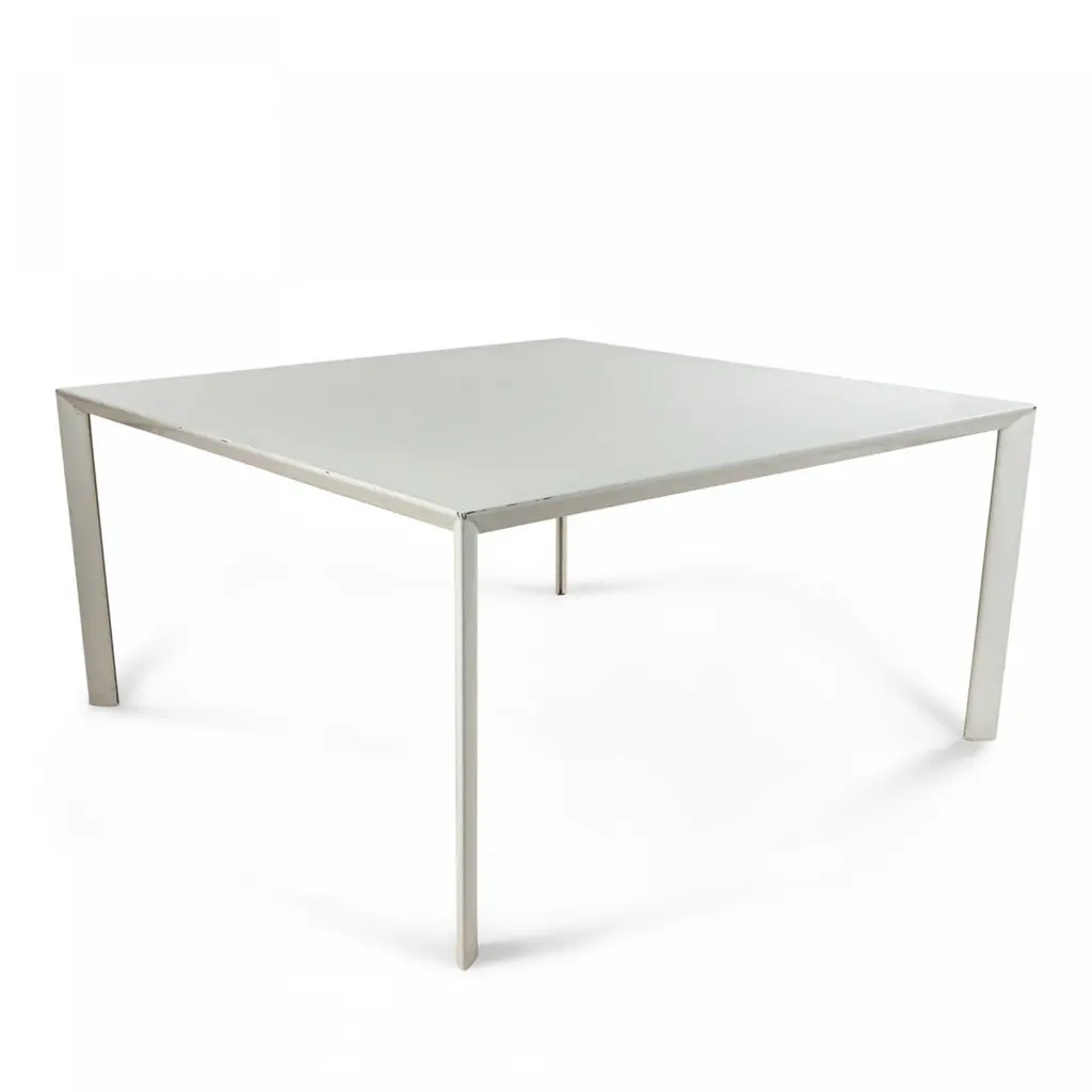 2 Contemporary large white glass square work tables with white metal legs (PORRO)(PRICED EACH). Some scratches, scuffs on legs