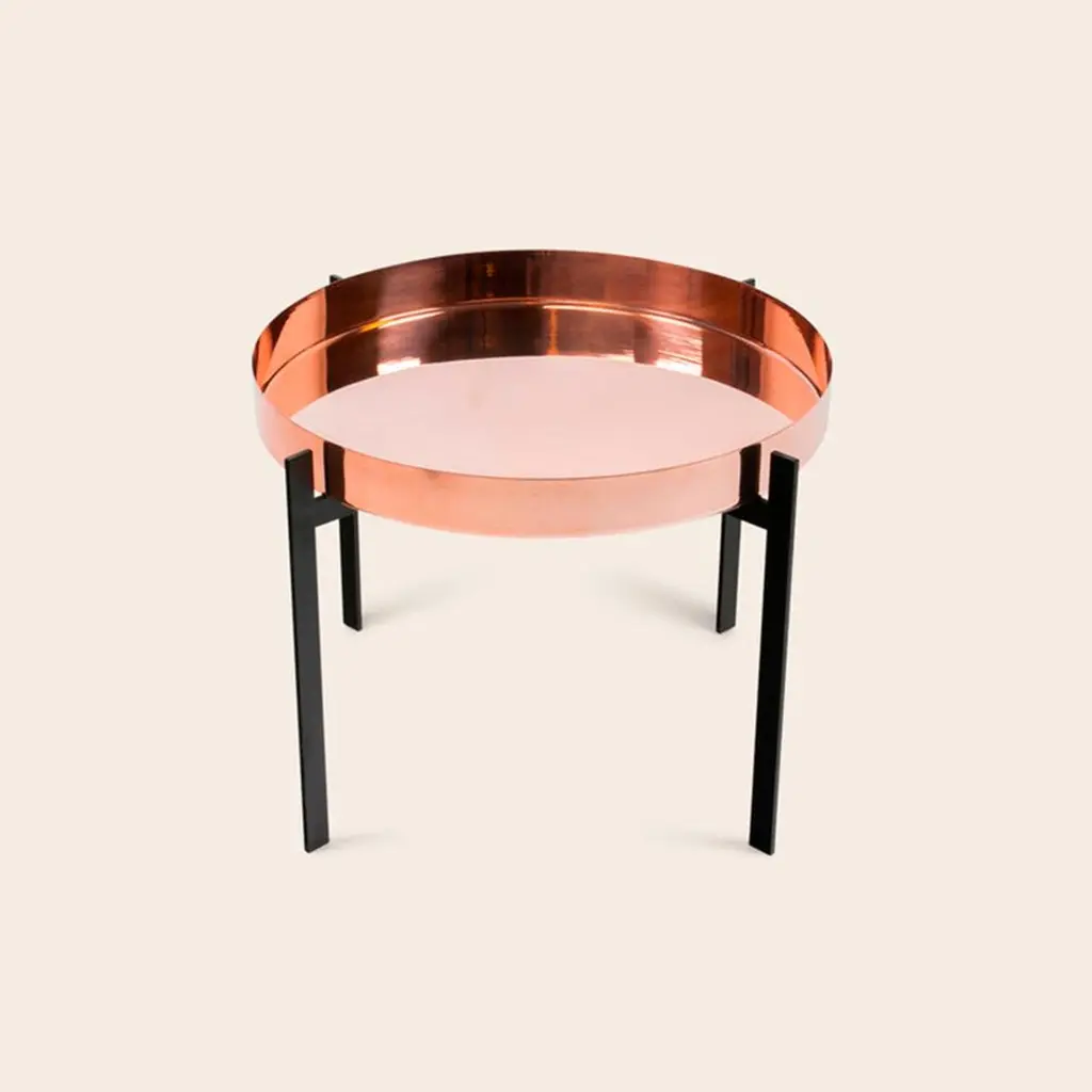 Copper single deck table by Ox DenmarqDimensions: D 57 x W 57 x H 38 cmMaterials: Steel, CopperAlso Available: Different top options available.OX DENMARQ is a Danish design brand aspiring to make beautiful handmade furniture, accessories and lighting in natural high-quality materials in fair prices. " When we set out back in 2003, we were primarily working with vegetable-tanned saddle leather thus the name OX was a tribute to our unique leather and the animal providing it.The other half of our name, DENMARQ, is chosen to emphasize that we are a Danish design brand based on the Danish design tradition and that most of our furniture is produced in Denmark. However, DENMARQ not only refers to our home country, but also to the co-founder and designer - DENnis MARQuart.Before finishing his design studies at the Copenhagen Design University, Dennis Marquart did a Blacksmith education. This background is extremely useful when developing and designing products."OX DENMARQ handmade products will only get more beautiful as time passes and natural patina sets in.Many OX products are shaped around marble or vegetable-tanned saddle leather. Stone and leather are materials that will, and should, get marks over time. But they will also age with a very special beauty. When you learn to appreciate the beauty of maturity and of time passing, you have learned to appreciate patina the way it should be appreciated.