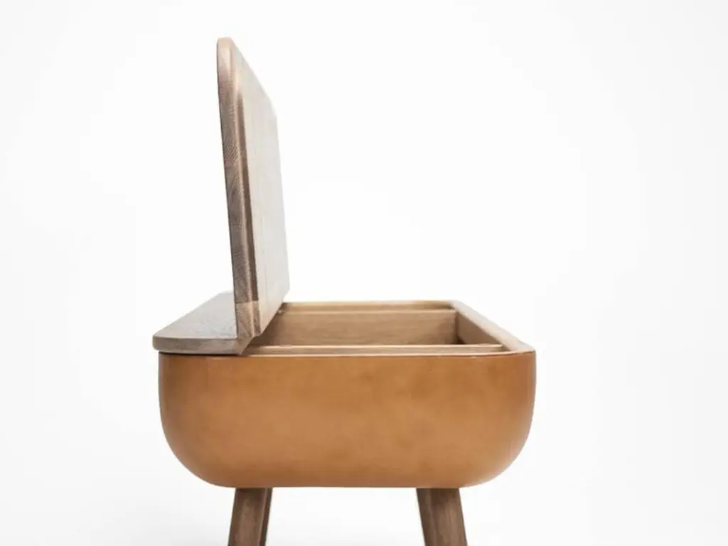 Inspired by ancient fishing vessels, the Coracle bench features a half hide of English bridle leather remarkably formed and stretched by hand about a frame of solid wood.With a duality of function, the Coracle provides both stable seating for daily ritual and ample storage for delicate belongings. Perfect for the foot of a bed or as a welcoming host in your foyer or front hall.Wood and Leather finishes on this item are customizable.Overall Height is customizable to suit your personal preference. Dimensions: Length: 48" Depth: 15"Height: 16-1/4" (customizable)Handmade in Hamilton, Ontario.Material Notes:Vegetable tanning is a natural, eco-friendly process that produces durable leathers with a remarkable depth of color and rich patina. Our veg-tan leather is sourced locally through a tannery that has been perfecting this process since 1867 - dedicated as we are to a core offering of sustainable products that are created with integrity and a rich sense of materiality.Solid wood components are fabricated in house using locally sourced hardwoods purchased through FSC certified dealers.