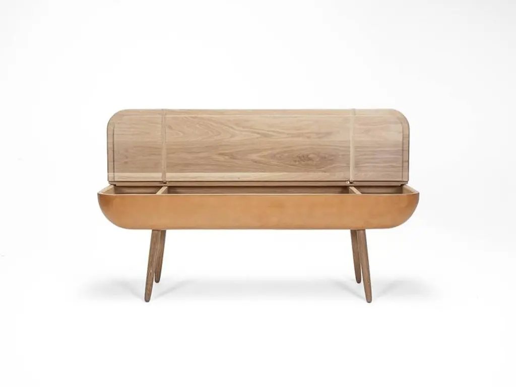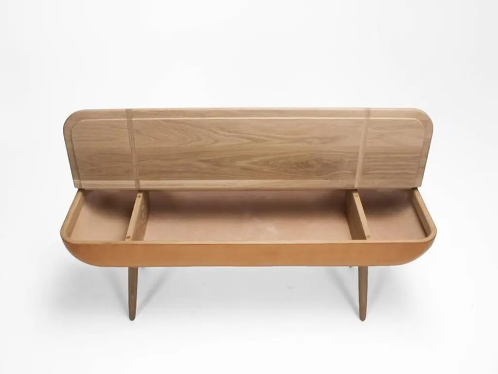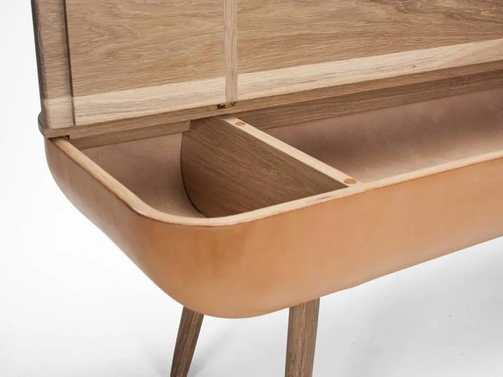 Coracle Bench With Storage, White Oak And Eco-Friendly Vegetable Tanned Leather
