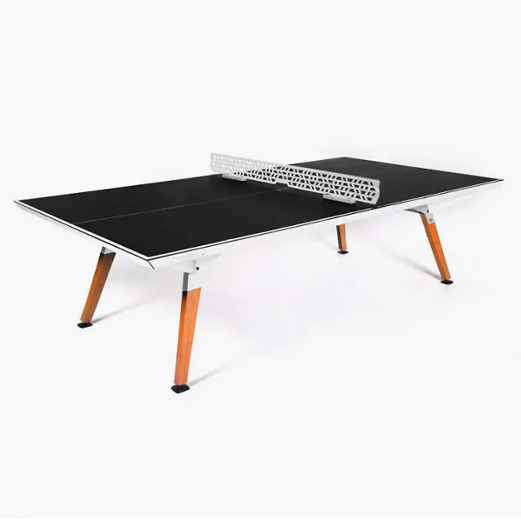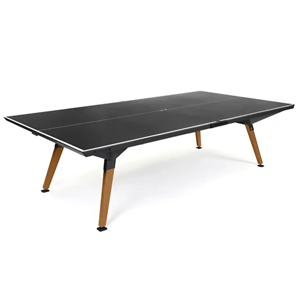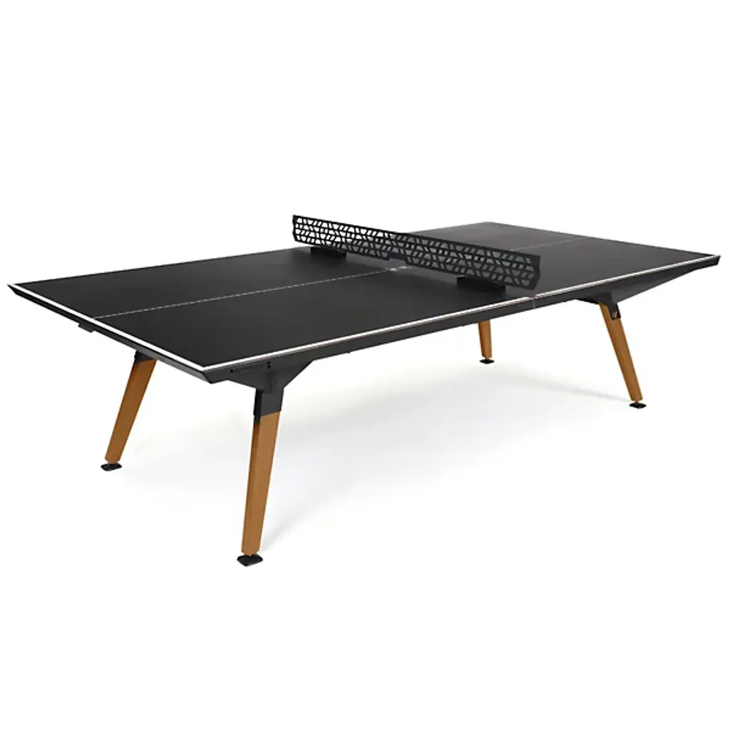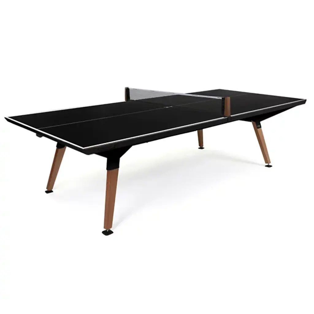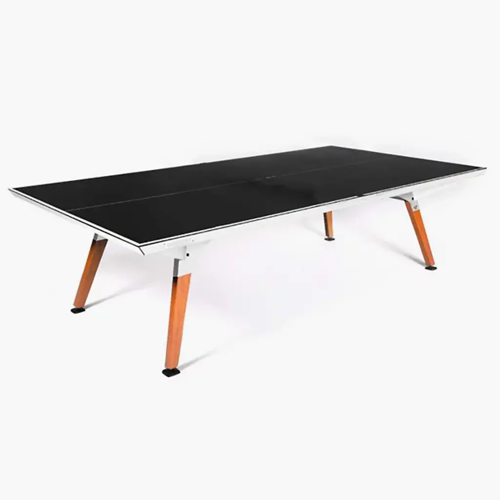 Strike up a volley with the Cornilleau Origin Convertible Outdoor Ping Pong Table from Cornilleau, designed by Cornilleau & Stella and made in France. It rests its steel structure atop exotic Moabi wood legs that combine durability and elegance. Built with a solid-core laminate tabletop, a steel structure coated in epoxy paint, and stainless steel screws, this table is made to withstand outdoor conditions. Four adjustable feet ensure it levels on any surface, enhancing playability and precision. Treated for longevity, every element of this table ensures years of outdoor enjoyment while included rack and ball storage and a detachable net keeps the table uncluttered and functional, allowing its use as a gathering space for meetings or mealtimes for years to come.