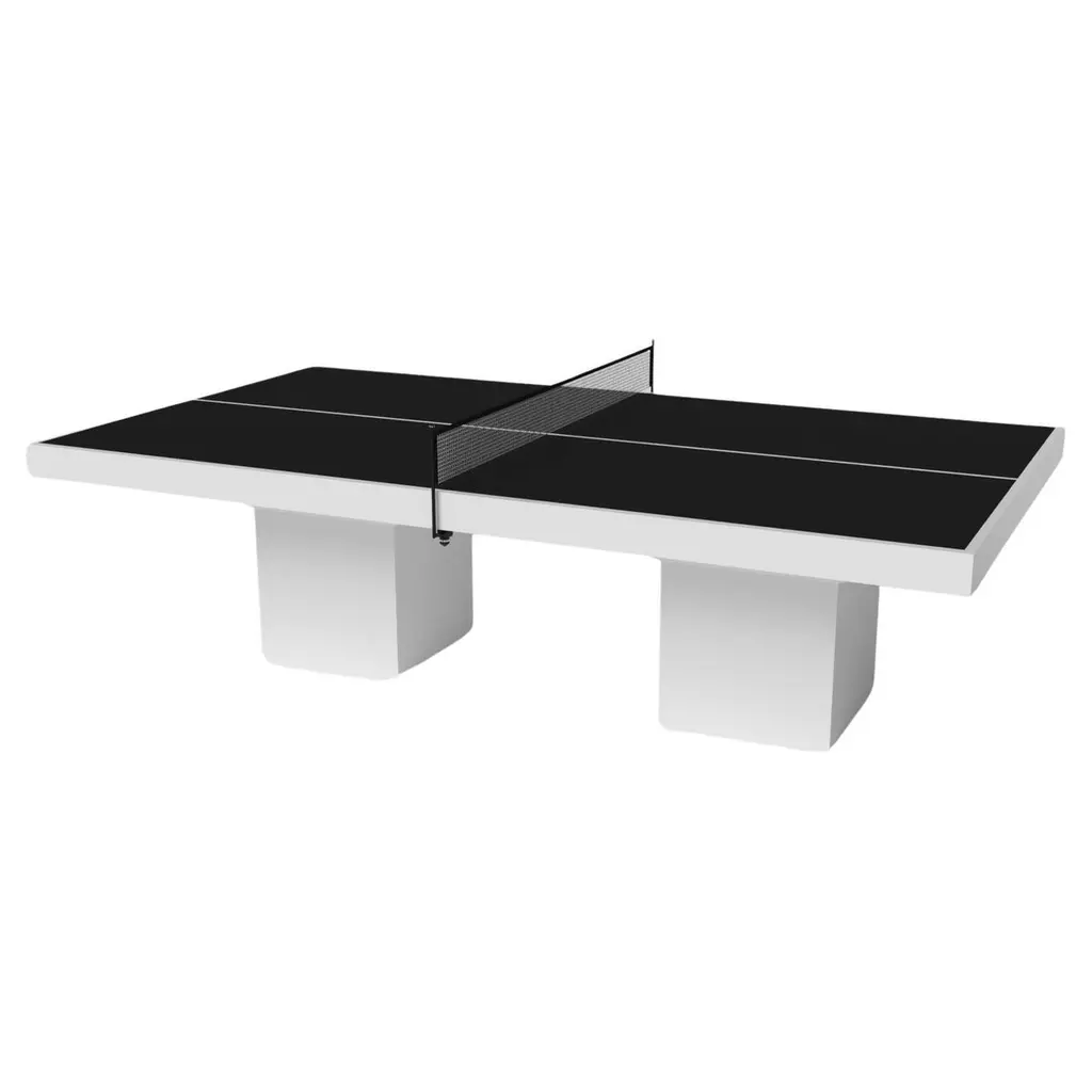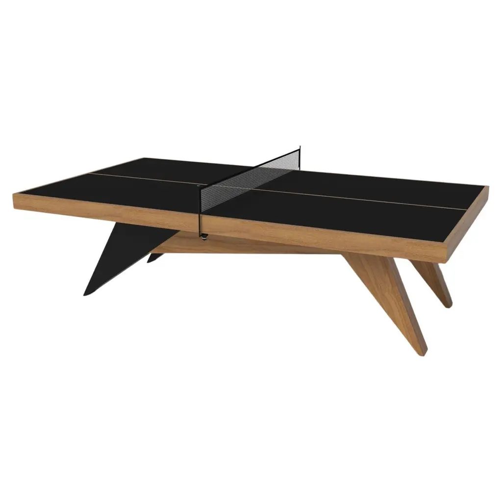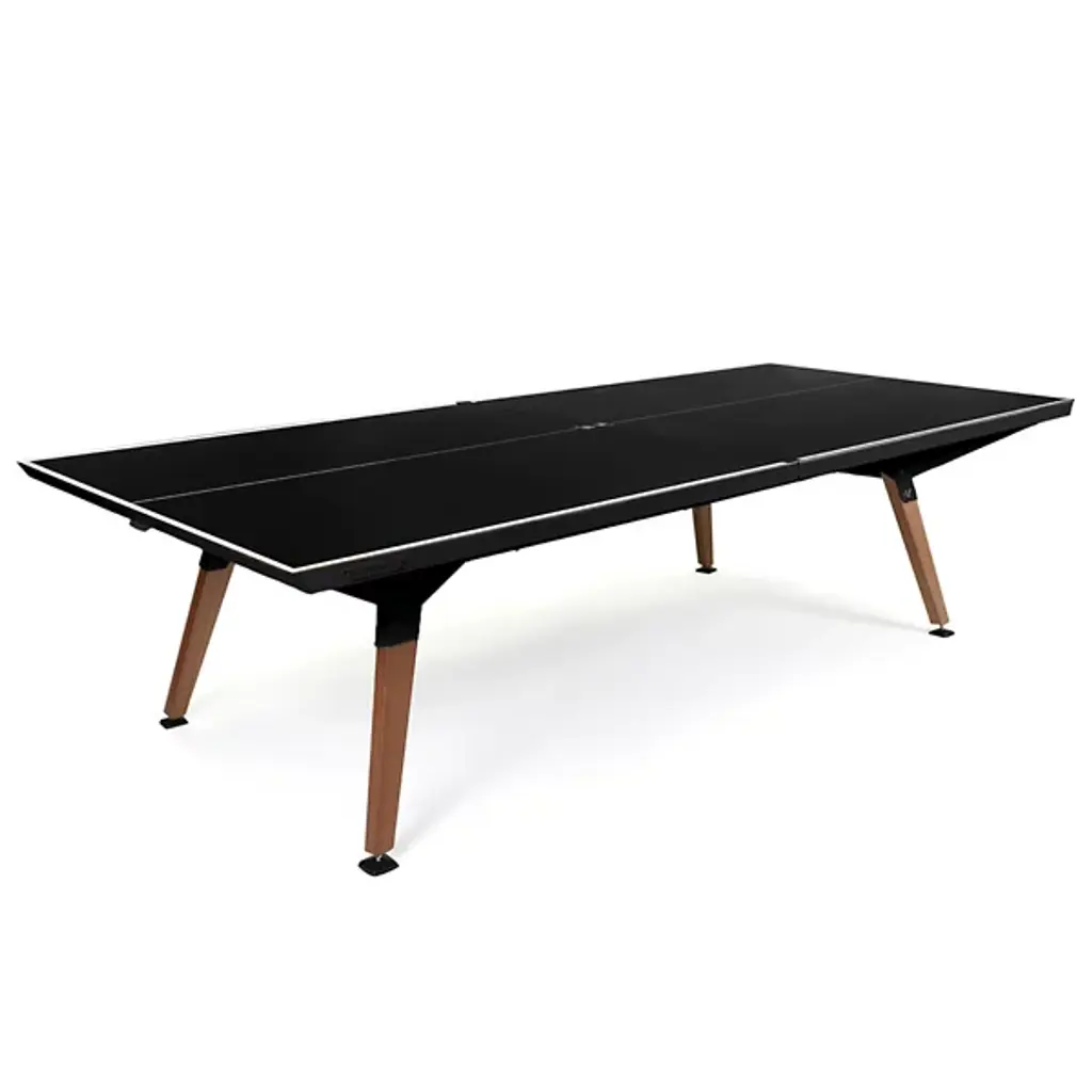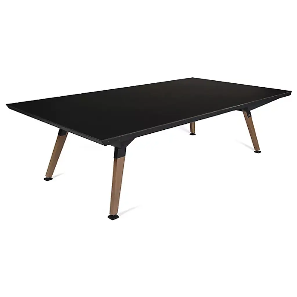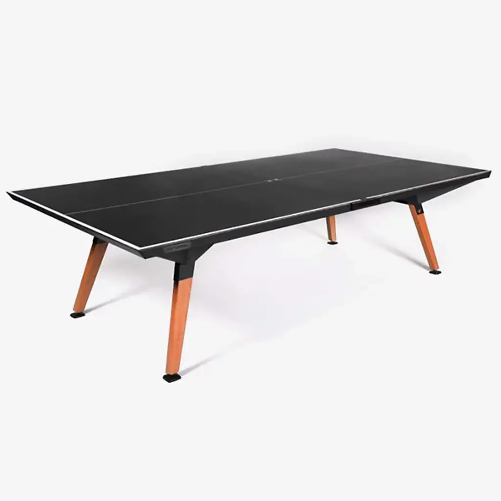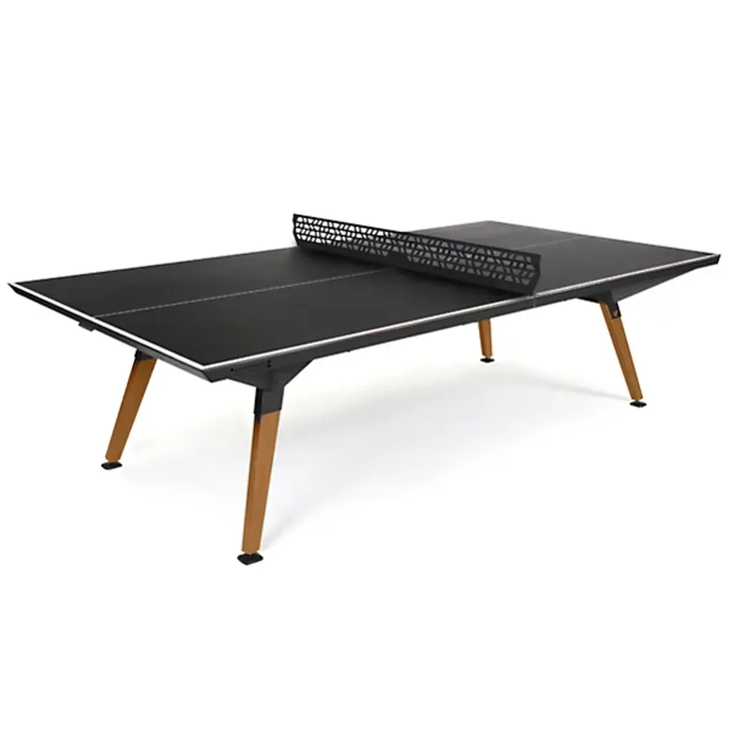 Strike up a volley with the Cornilleau Origin Convertible Outdoor Ping Pong Table from Cornilleau, designed by Cornilleau & Stella and made in France. It rests its steel structure atop exotic Moabi wood legs that combine durability and elegance. Built with a solid-core laminate tabletop, a steel structure coated in epoxy paint, and stainless steel screws, this table is made to withstand outdoor conditions. Four adjustable feet ensure it levels on any surface, enhancing playability and precision. Treated for longevity, every element of this table ensures years of outdoor enjoyment while included rack and ball storage and a detachable net keeps the table uncluttered and functional, allowing its use as a gathering space for meetings or mealtimes for years to come.