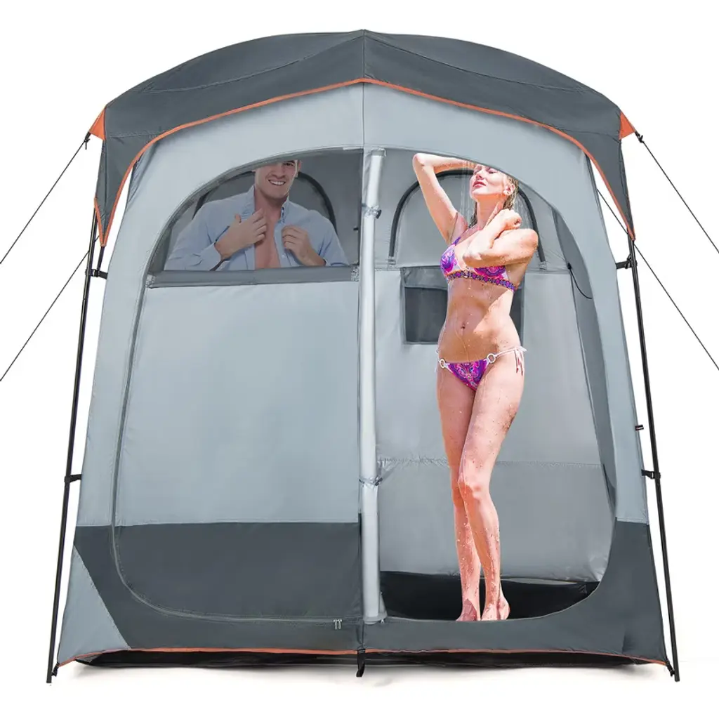 Costway 2 Room Shower Tent Oversize Privacy Shelter Portable Dressing Toilet Outdoor Gray