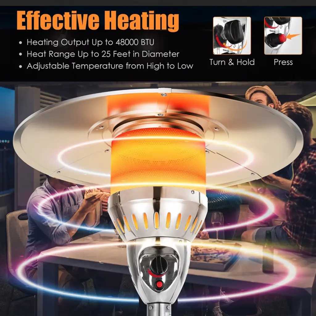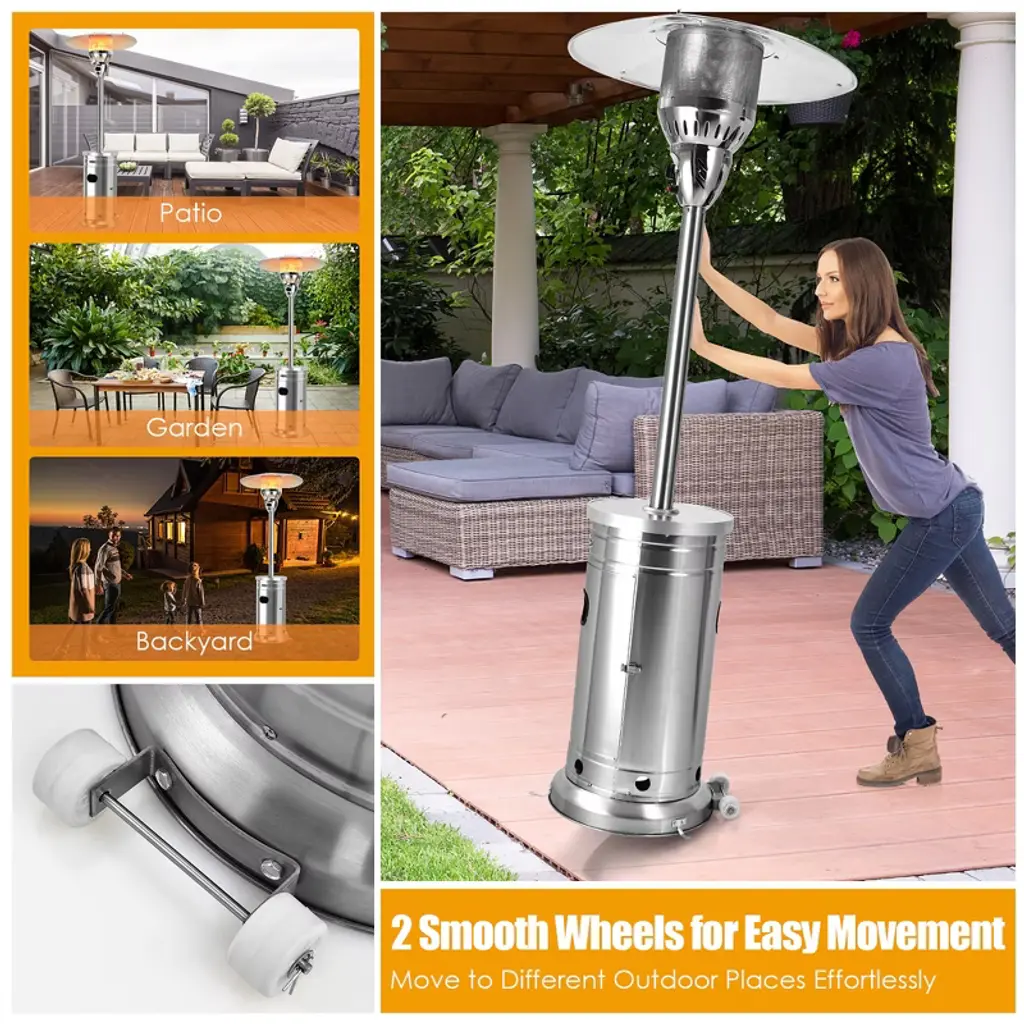 Costway 48,000 Btu Patio Propane Heater Stainless Steel W/table & Wheels