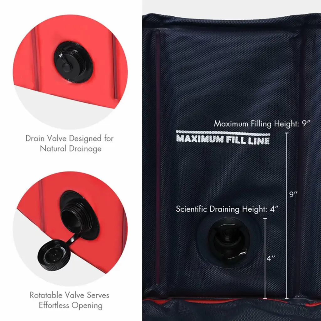 Are you still worrying about the inconvenience of taking your dog to an unmovable place at home for head-scratching bathing work? Do you have to endure the dirty dog outdoors all the time without bathing equipment? Our pet pool would solve all the problems! As it is wide enough, even your kids could play with your pets inside the pool. There's no need to worry about the stability. Our pet pool is made of thick MDF board and durable PVC cover for long service time. Most importantly, Anti-slip bottom and wall guarantee better protection and prevent from scratch. A drain valve below can be really helpful when you need to empty water.FeaturesNon-toxic PVC cover for better tear resistance and abrasion performance Anti-slip and scratch-resistant interior surface for safer protection Strong and thick MDF material to avoid deformation or collapse Drain valve available for drawing off the water easily Easy to fold each piece of the pool wall, thus convenient to carry and store All around 35 pieces for extremely wide bathing area for both pets and kids Multi-purpose usage as a bathing pool, kid's toy bar, ball pit, etc It has ASTM certification for safer useColor: Red\Blue Material: MDF+PVC Pool Diameter: 63'' Height: 12'' Net Weight: 14 lbs Package includes: 1 x Pet Pool