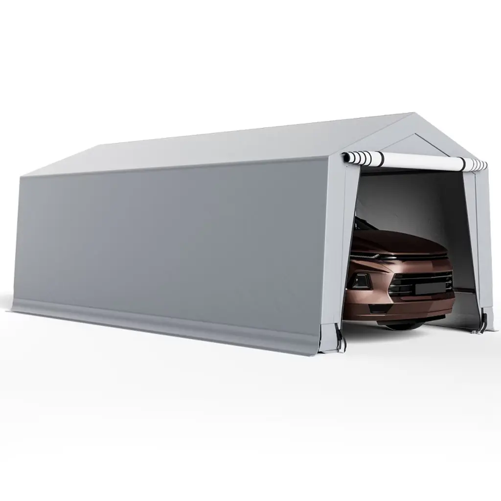 Enhanced size for multiple applications [Additional garage, Event tent, Outdoor cover]; Roof height 11', pole height 7.2', door width 13'. Its all-metal frame provides strength, making it ideal for workshops, equipment storage, or as a party tent.