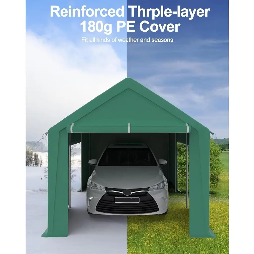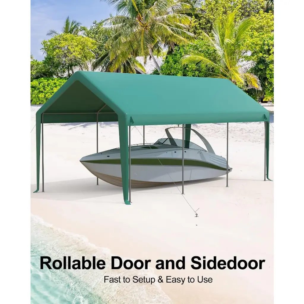 Coucheta 13x20ft Portable Garage, Heavy Duty Carport Canopy With Reinforced Frame & 180 G Pe Waterproof Canopy, For Boat, And Pickup Truck, Green