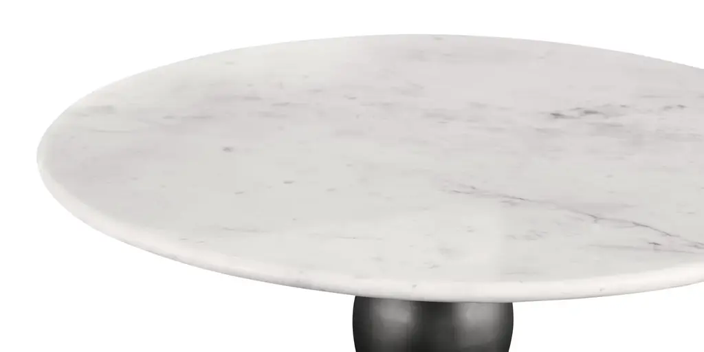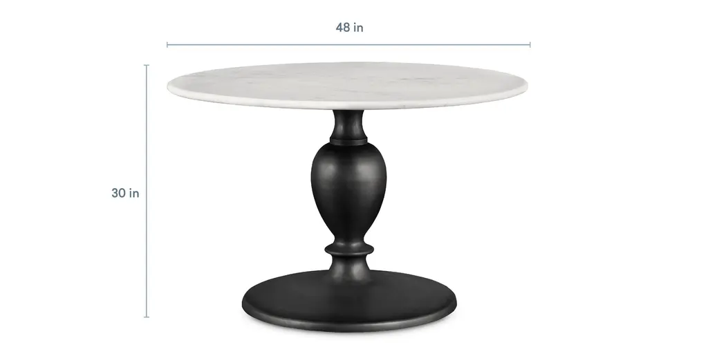 Your dining space might be the ideal place for this captivating mixed-material Coventry Round Dining Table. Available with either a 48" or 54" tabletop diameter, the Coventry features " thick solid Banswara marble anchored to a cast aluminum base in a textured, bronze finish. The table's round shape and organic styling lends itself to gracious seating in almost any modern space, with the pedestal base leaving room to gather chairs around in easy comfort for all. The Coventry Collection also offers the opportunity to pair your show-stopping dining room table with an occasional table to successfully integrate your overall design plan.