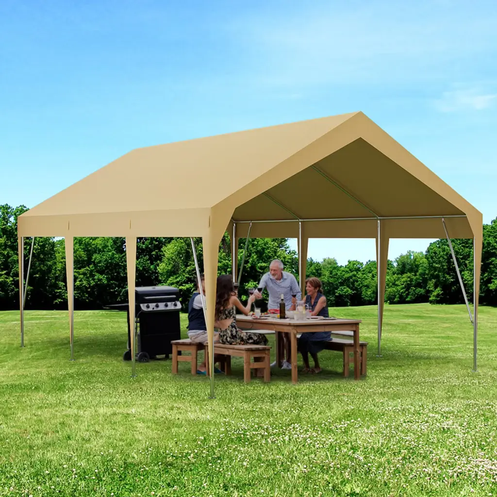 Features:Multiple Size Options: Available in 10'x20', 12'x20', and 13'x20' configurations to fit different vehicles and storage needsHeavy-Duty Protection: Made from high-strength materials with UV-resistant and waterproof coatings for long-lasting durabilityVersatile Applications: Suitable for car and boat coverage, outdoor party shelter, or temporary storage shed solutionEasy Assembly: Designed for straightforward setup with reinforced frame structure and clear instructionsAll-Weather Performance: Provides reliable protection against sun, rain, and other environmental elementsPackage Included:1 × Carport Canopy Frame