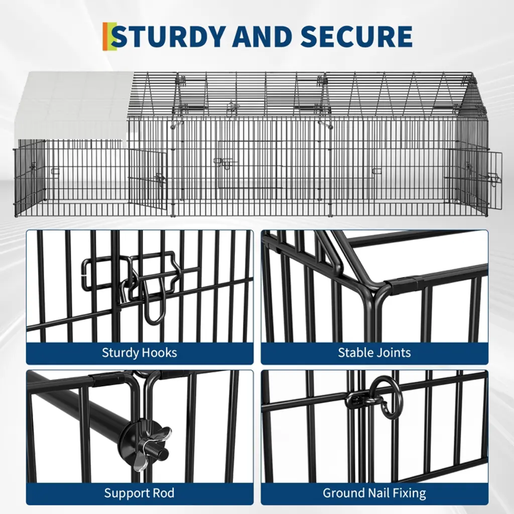 COZONY’s 86"x40" metal chicken coop offers a secure and ventilated outdoor habitat for poultry. The rust-proof metal frame ensures durability, while the waterproof and sunproof cover provides protection from harsh weather. Featuring a secure door lock and easy mobility, this portable run is simple to assemble and ideal for chickens, ducks, or rabbits. Keep your animals safe and comfortable in any season.