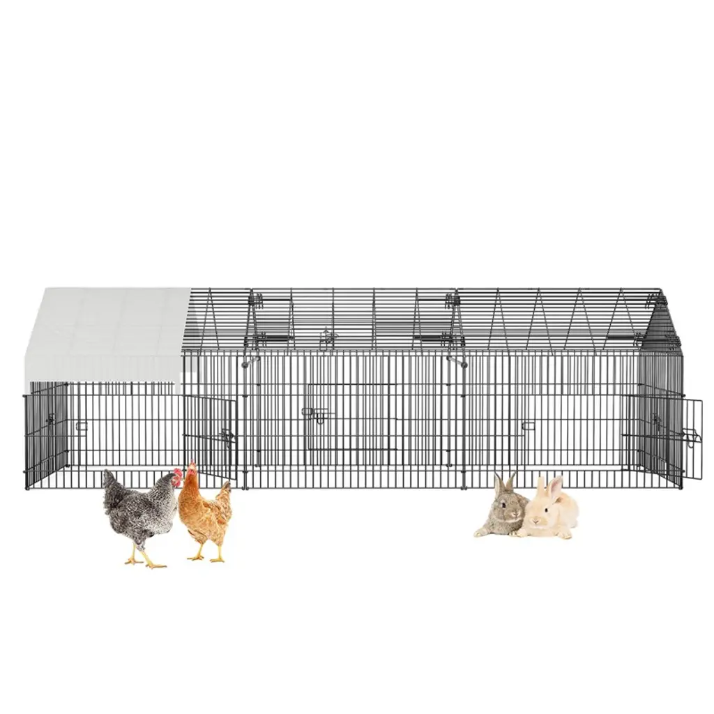 Cozony 86"x40" Large Metal Chicken Coop With Cover, Portable Poultry Run With Ventilation & Lock
