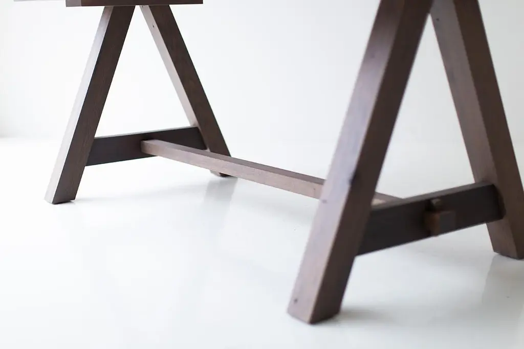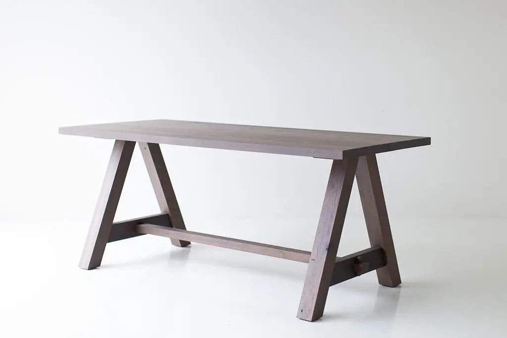 CraftAssociates Table, Liberty Modern Farm Table, Reclaimed OakThis farm table is expertly crafted. The table is constructed from reclaimed oak by hand, not machine. The walnut is then shaped by artisans and finished with a hand applied oil OR commercial grade finish.Craft Associates® Furniture is proud each piece is made in the US. We strive to craft a product that will stand the test of time. We use the best materials and have the best craftsman in the business. We stand 100% behind our product. "Modernism is a movement that began in the late 1800's and ended approximately in the early 1970's. It broke away from the heavily ornate and dark furniture that was typical of the day. According to "Preservation" Magazine, modernists were "intrigued" by the emerging technologies--concrete, glass and steel. The work rejected the ornamentation of Victorian and art nouveau styles. "Their work was both spare (think of Mies, famous dictum "less is more") and lyrical, wrote Supid Bose in the magazine June 2008 issue. "Perhaps above all, they believed in function dictating form"…" - eHowManufacturer: Craft Associates® Modern FurniturePeriod/Model: Mid Century ModernSpecs: Reclaimed OakdimensionsH: 30" (76.2 cm)L: 72" (182.88 cm)D: 32" (81.28 cm)CraftAssociates Table, Liberty Modern Farm Table, Reclaimed Oak