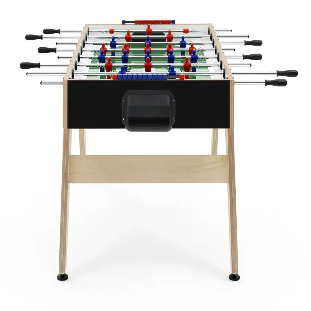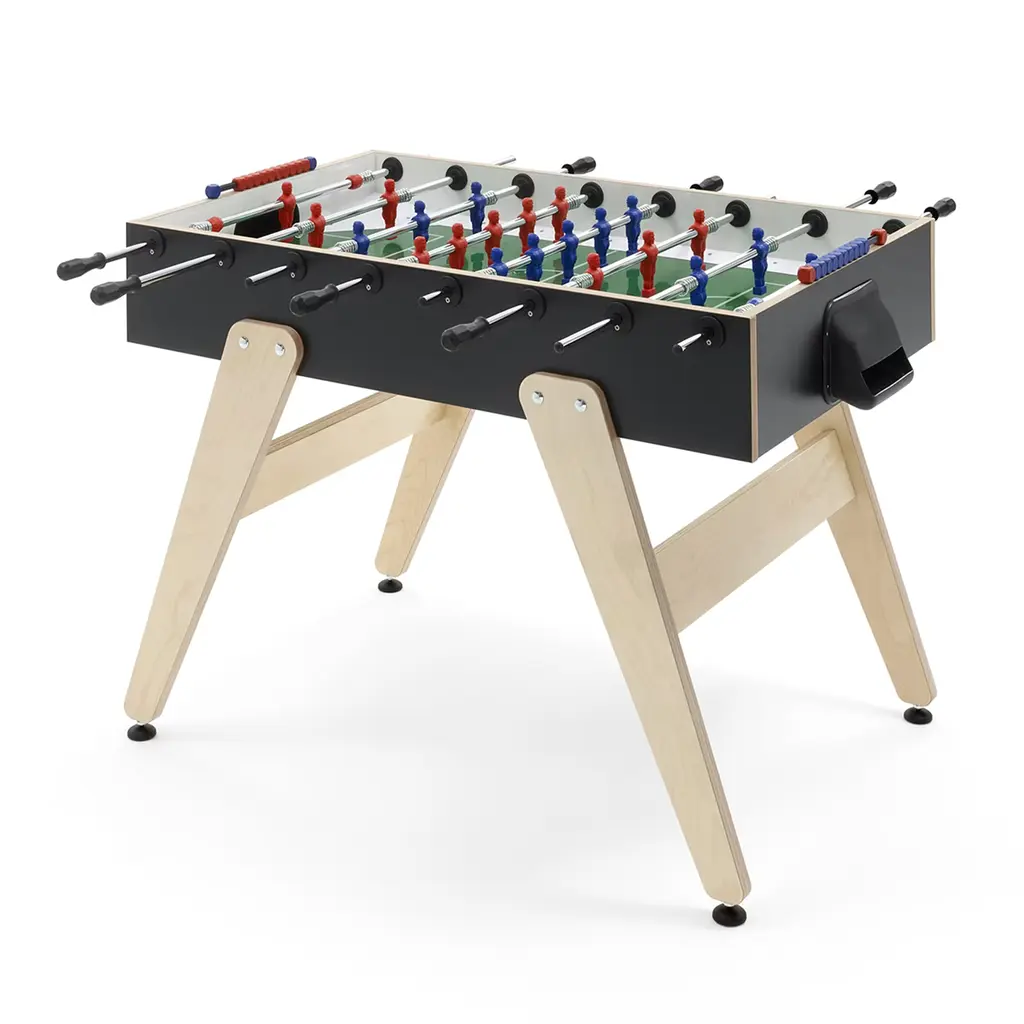 Combining a black hue with a warm natural wooden tone, this stupendous foosball table will make a timeless and elegant addition in contemporary indoor and outdoor areas alike. Designed by Basaglia + Rota Nodari, it features birch plywood legs finished in a warm natural tone. The top is made of plywood covered with plastic laminate, while the pitch is in tempered glass. Available in red or white upon request to the Concierge. Telescoping poles available upon request.