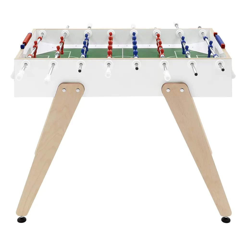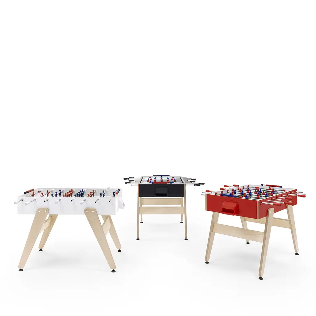 Part of the Cross Outdoor series of foosball tables that boast a clean and sophisticated design, this gorgeous piece by Basaglia + Rota Nodari combines a vivid red lacquer with a natural wooden tone. Resting on legs in birch plywood, the plywood top is covered with plastic laminate. Suitable for both outdoor and indoor use, the pitch is in tempered glass. Available in white or black upon request to the Concierge. Telescoping poles available upon request.
