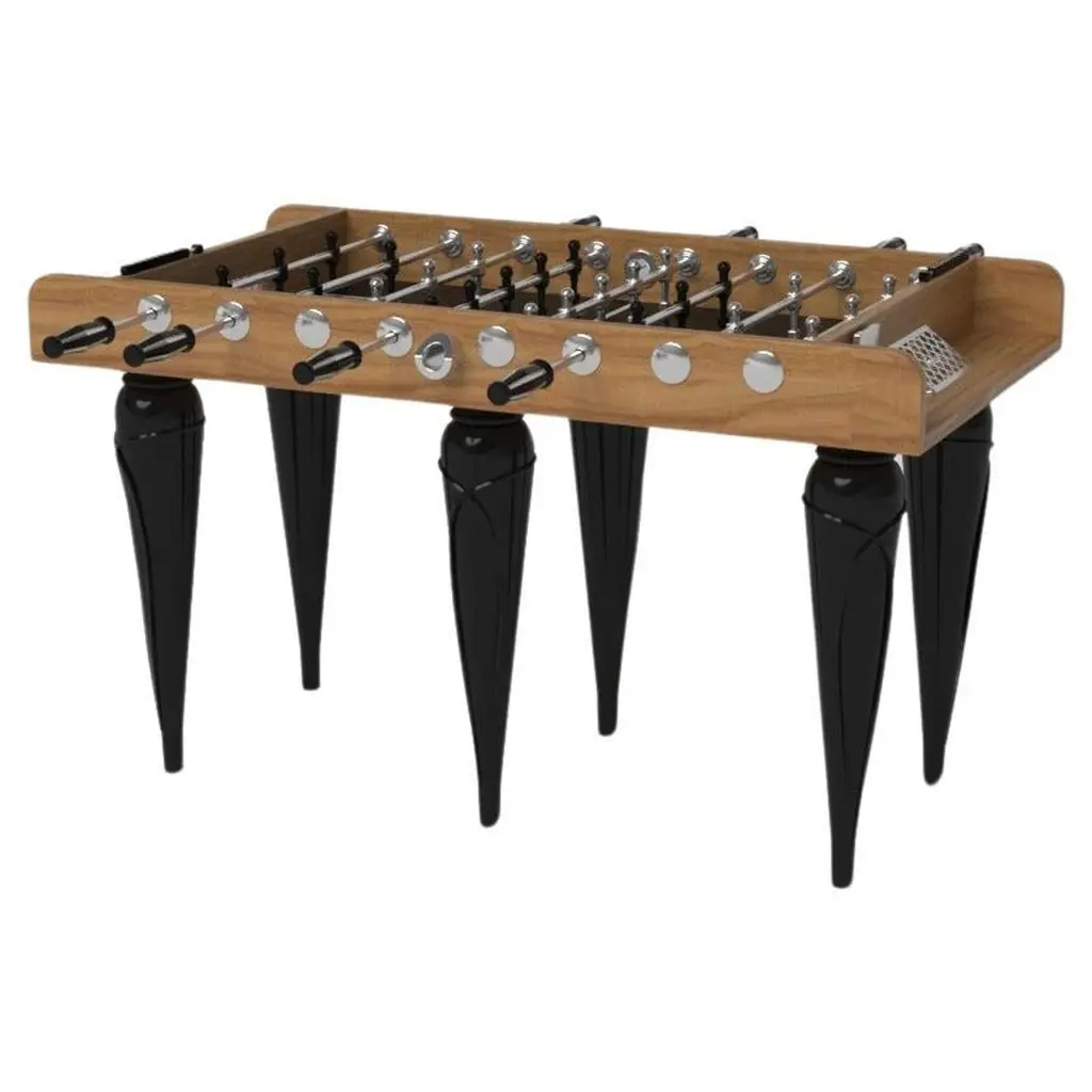 Designed by Basaglia + Rota Nodari for the Cross Collection of indoor foosball tables, this piece will make a stately addition to a contemporary interior. Fun and sophisticated, it features clean and essential lines of contemporary value. Fashioned of MDF, the top is covered in white plastic laminate, while the legs are crafted of red-lacquered birch plywood. The pitch is in tempered glass, and the feet are adjustable. Also available with blue legs, please check the Artemest catalog. Telescoping poles available upon request.
