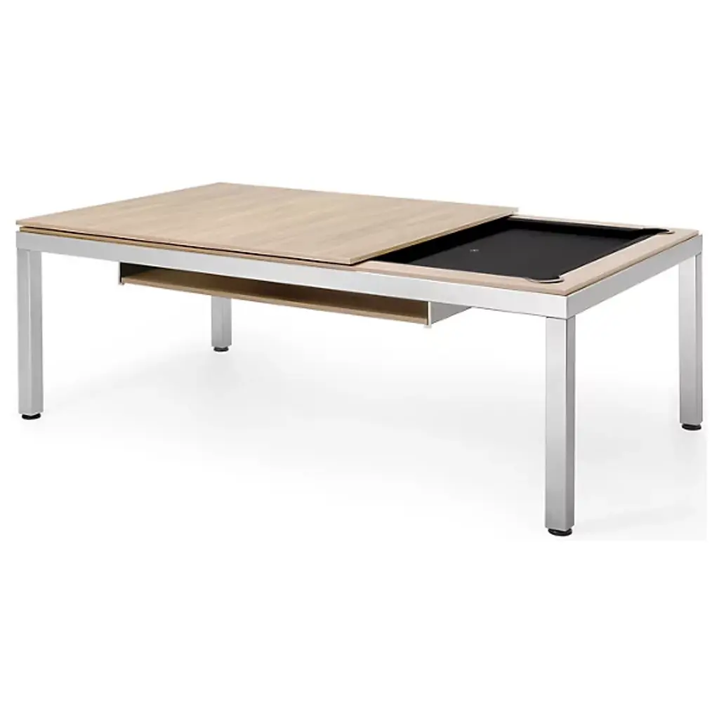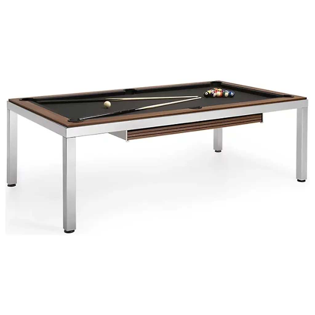 Linear, sturdy, and versatile. The Cube Pool Table from Pas Pendezza offers a stylish and modern way to have some fun. Made in Italy, this refined table is composed of an elegant and squared structure, enhanced by the top plane. Redefining the idea of a high-performance game, this product becomes tasteful and engaging, and it comes equipped with 4 cues, a set of billiard balls, a box of chalk, a triangle, and a hairbrush.