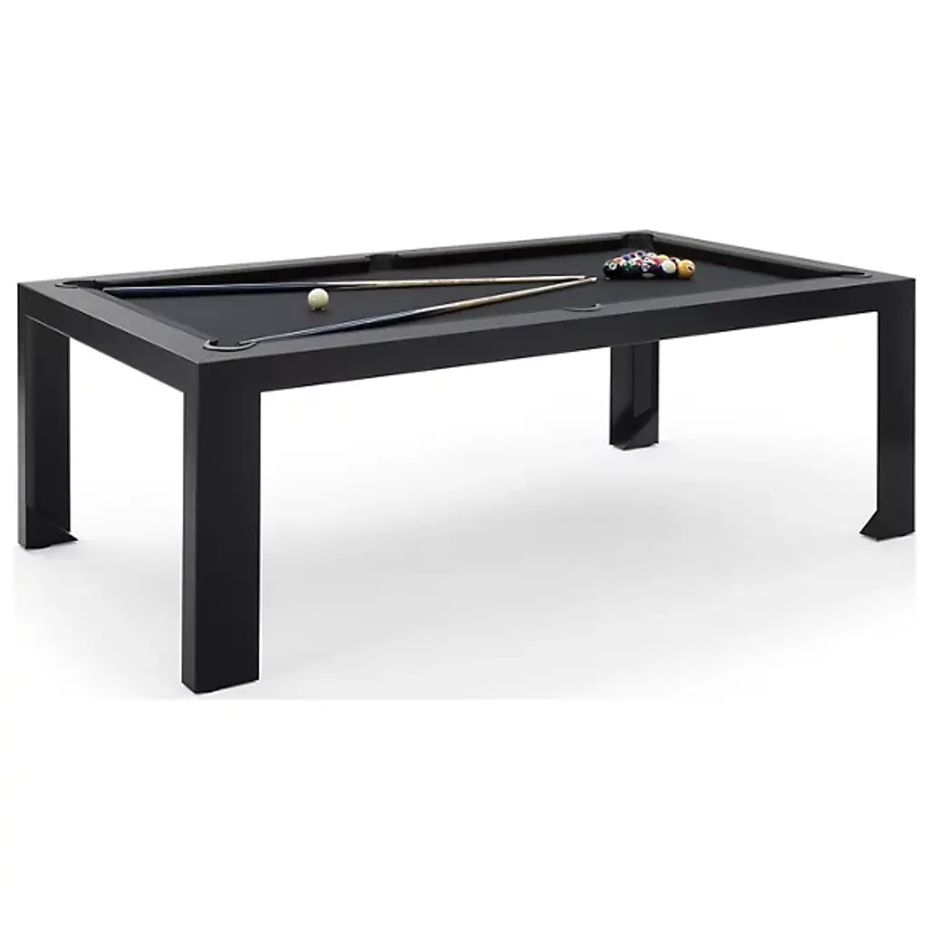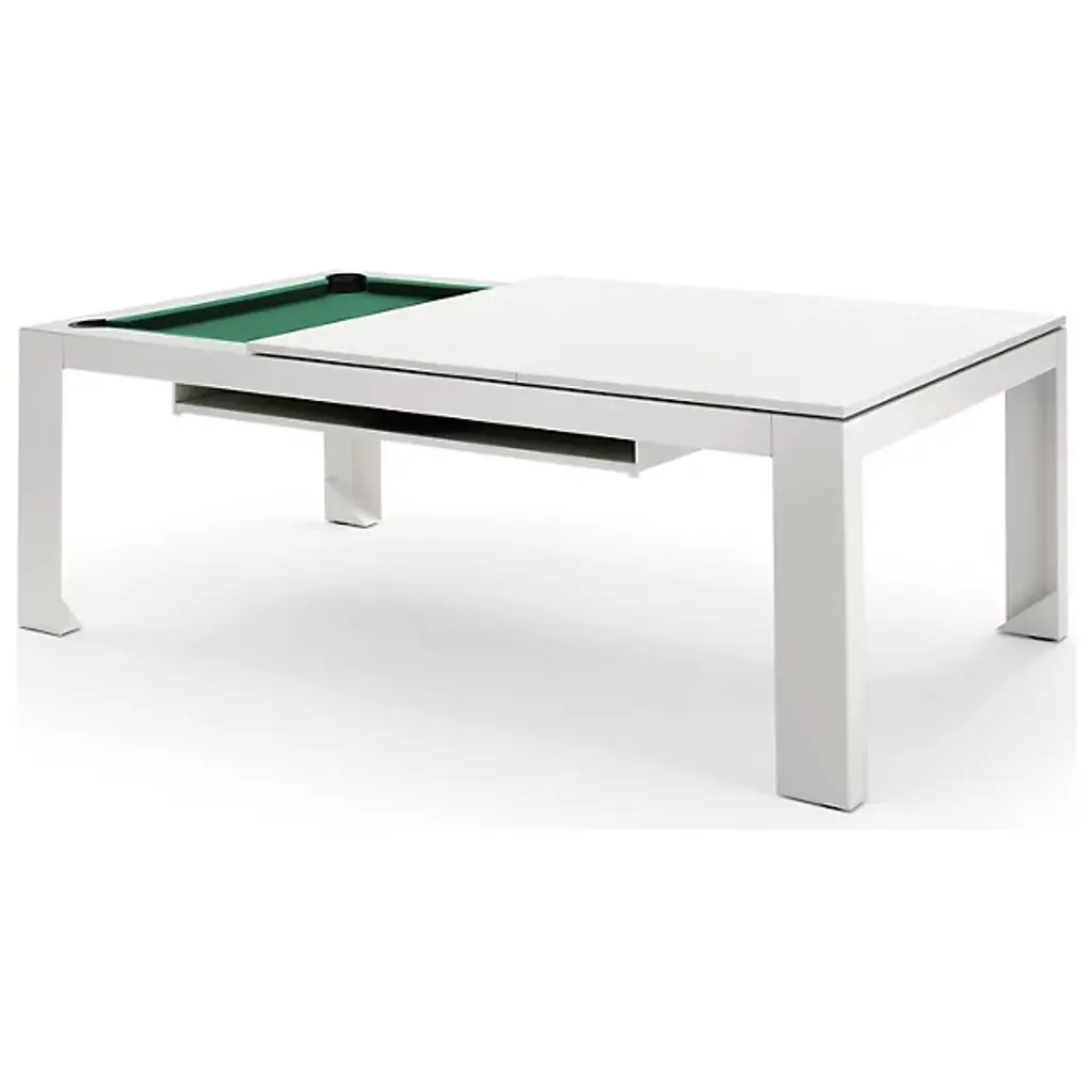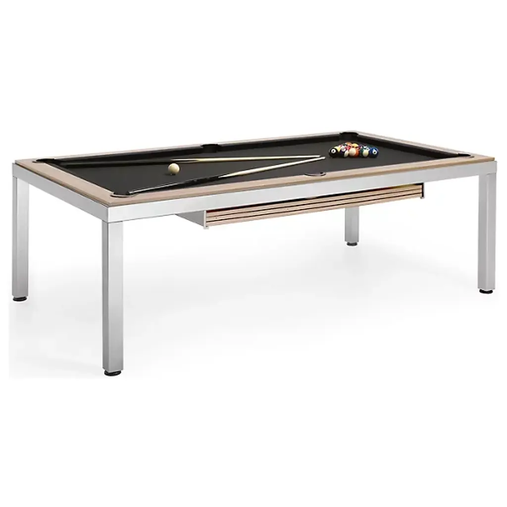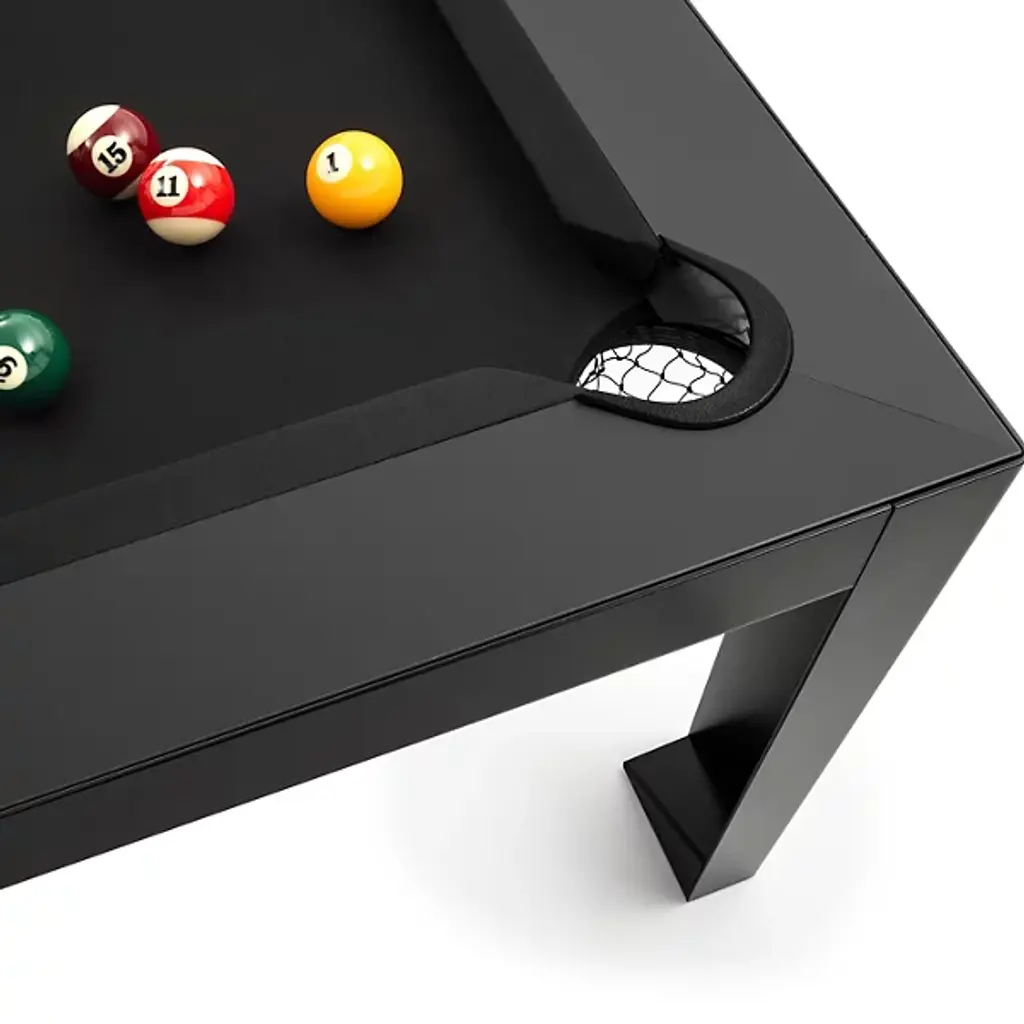 Versatile, contemporary, and stylish. The Cubista Pool Table from Fas Pendezza is a handsome and modern table with a secret: it contains a billiard table. All you have to do is remove the tops--which are divided into three separate pieces--and place them in the retractable supports. The wooden body with a slate plane is supported by metal legs, and the integrated adjustable feet are sharp and linear, inspired by the lines and shapes of the Cubist movement.
