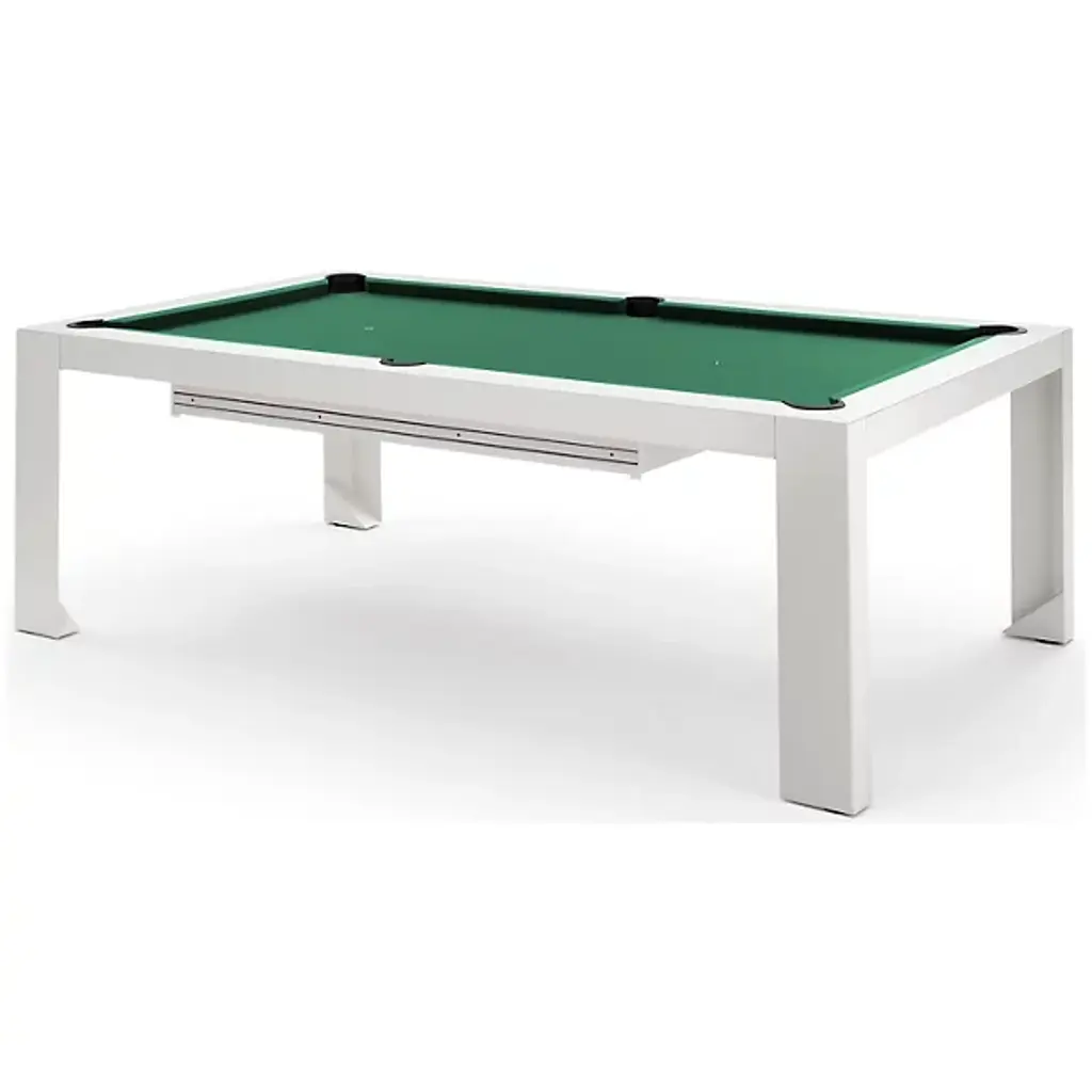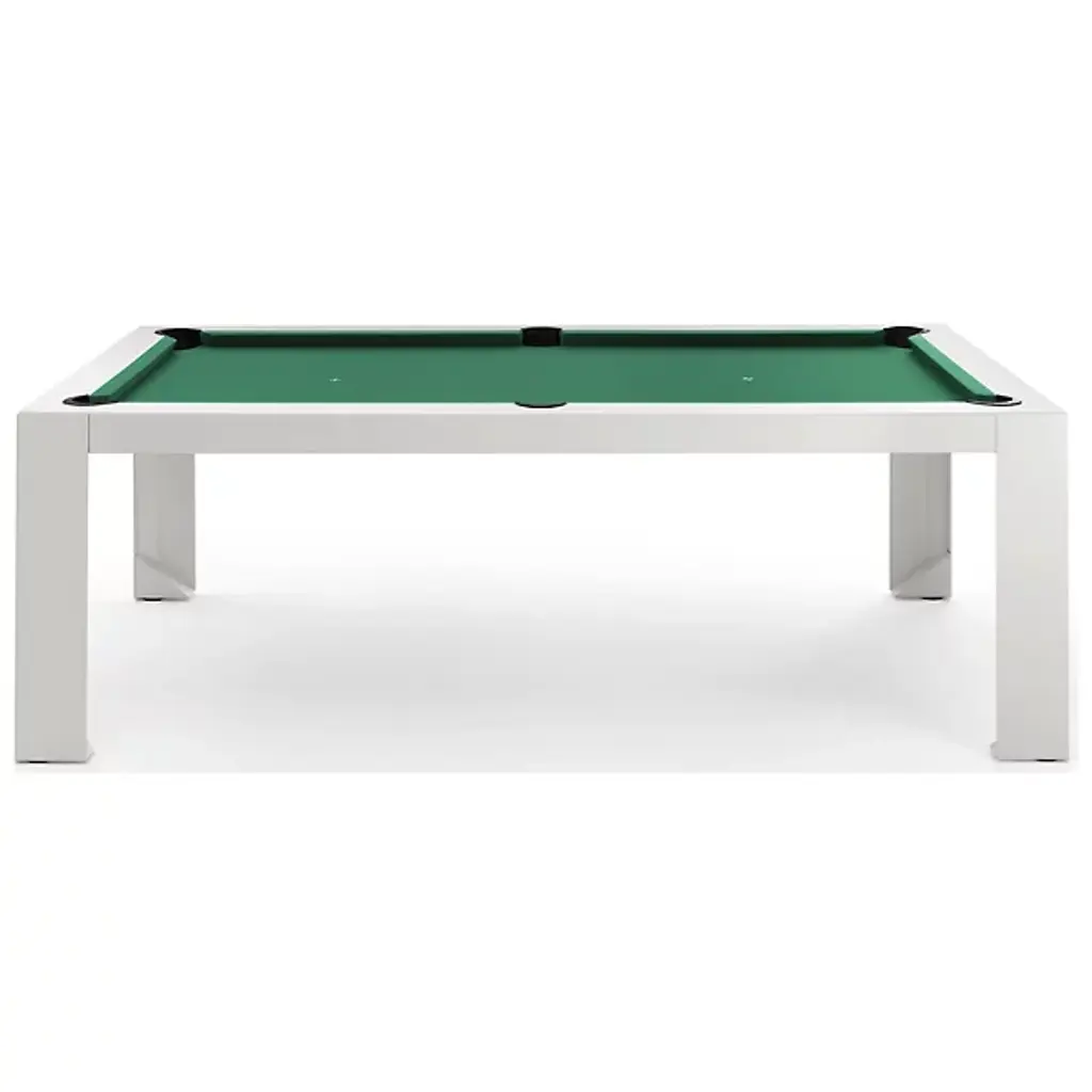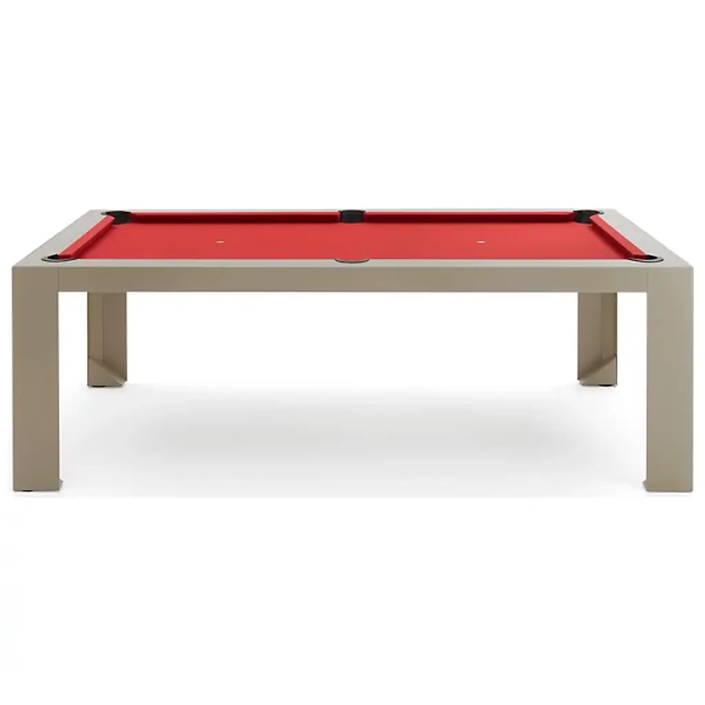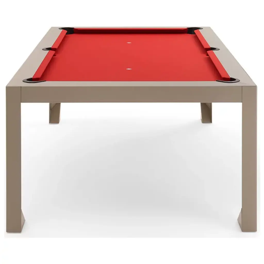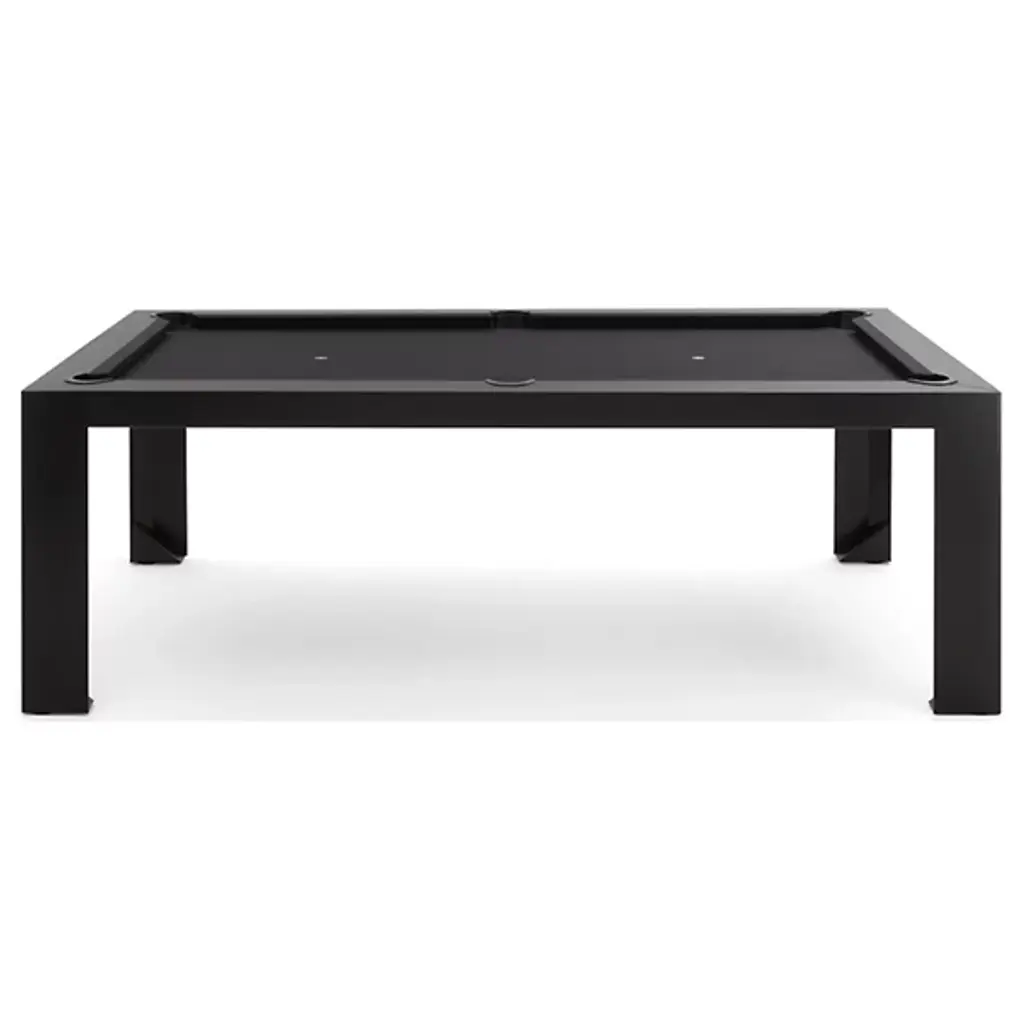 Versatile, contemporary, and stylish. The Cubista Pool Table from Fas Pendezza is a handsome and modern table with a secret: it contains a billiard table. All you have to do is remove the tops--which are divided into three separate pieces--and place them in the retractable supports. The wooden body with a slate plane is supported by metal legs, and the integrated adjustable feet are sharp and linear, inspired by the lines and shapes of the Cubist movement.