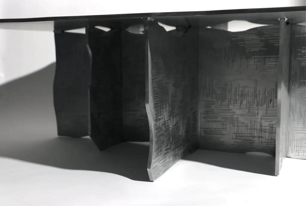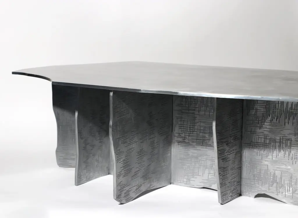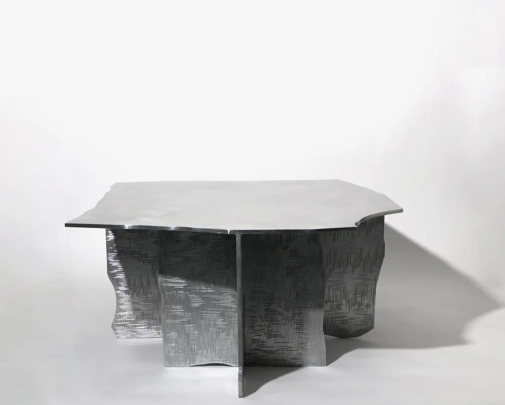 Cure 06 low table by Sundo YoonDimensions: D 68 x W 95 x H 33 cmMaterials: Scratch and hand brushed on Aluminum.Cure Series - Sundo Yoon'The Cure Series is a series of works by designer Sundo Yoon based in Korea. The Cure series feels that the low self-esteem and negative thoughts of the artist from childhood are getting better through time to create the work. Shows this process as texture and form.