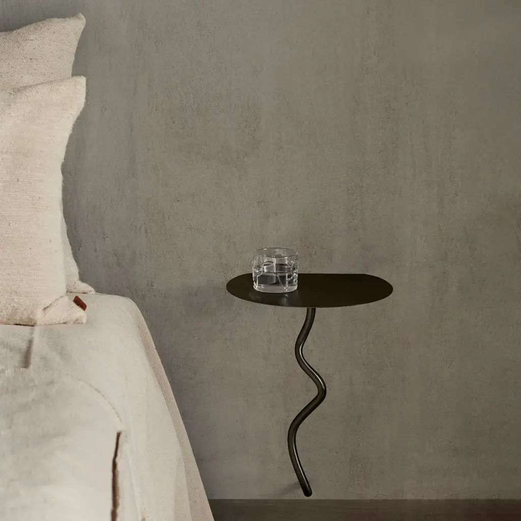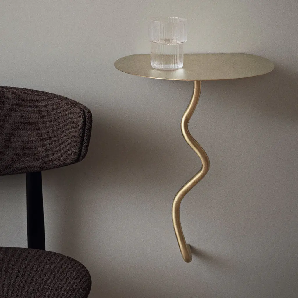 The ideal marriage of form and function, the Curvature Wall Table presents a decorative surface ideal for use in smaller spaces. Inspired by jewellery, the delicate and whimsical curves of the wall-mounted table elegantly juxtapose the solidity of the material, introducing a versatile furniture piece that can be used as a bedstand, to hold keys and other practical items in the hallway or in any other space where you are in need of a petite and versatile table.