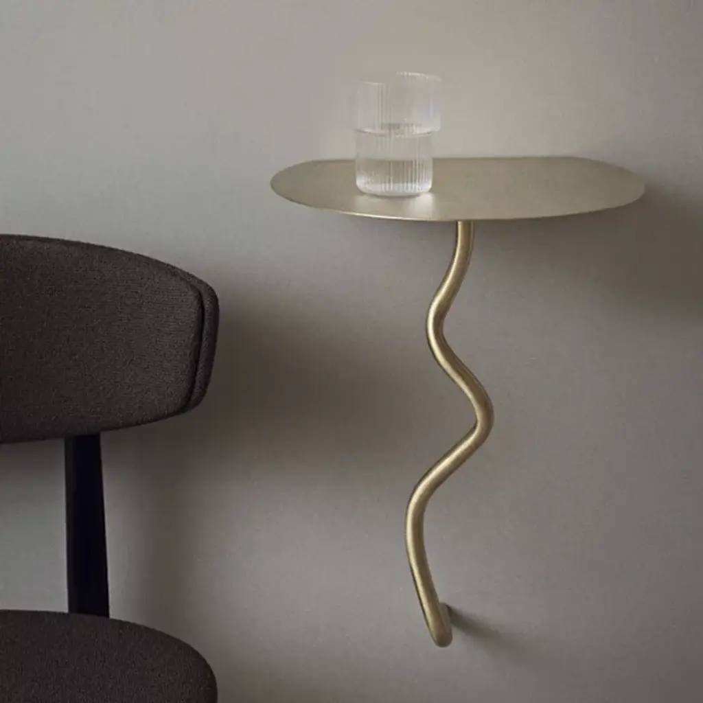 The Curvature Wall Table from Ferm Living is equal parts decorative and innovative. As its name suggests, it is secured to your wall so that you always have a place to display your accessories or keys. It is composed of solid brass for durability. As solid brass is a natural material, it will patinate over time, but this will add character alongside a standout design element of this fixture, which is its curved body, offering a whimsical, squiggly look.