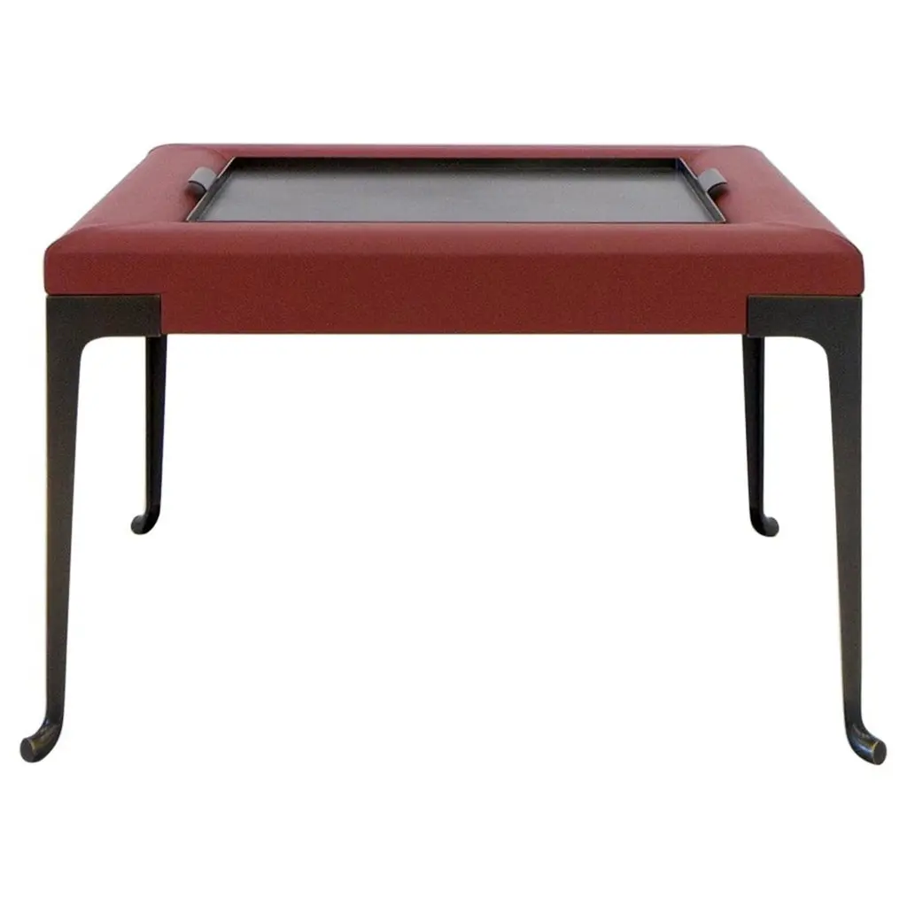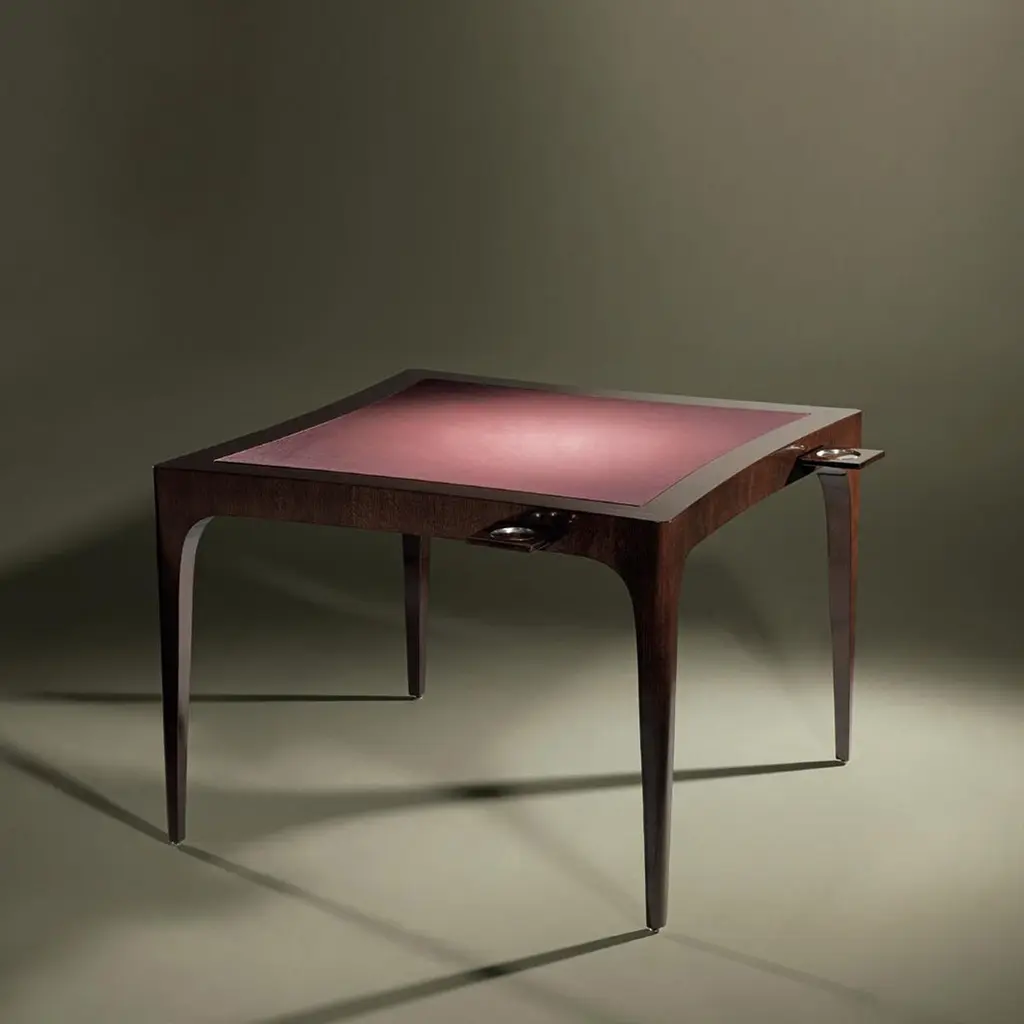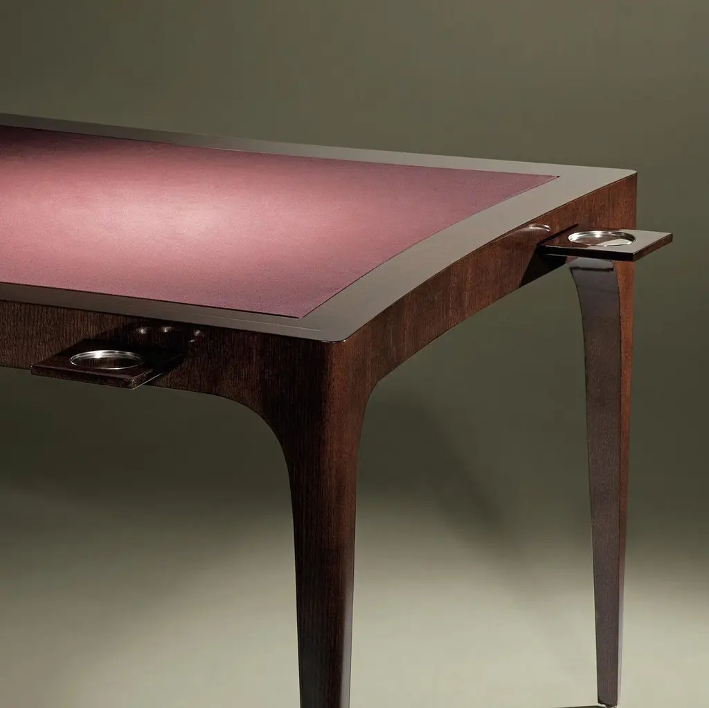 Game table with organic linesTop fabric available in several colours or client’s fabricDark walnut, fabric top, steel base for glasses. Bespoke / CustomizableIdentical shapes with different sizes and finishings.All RAL colors available. (Mate / Half Gloss / Gloss)