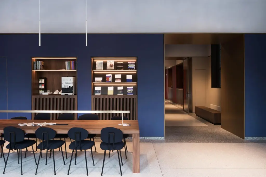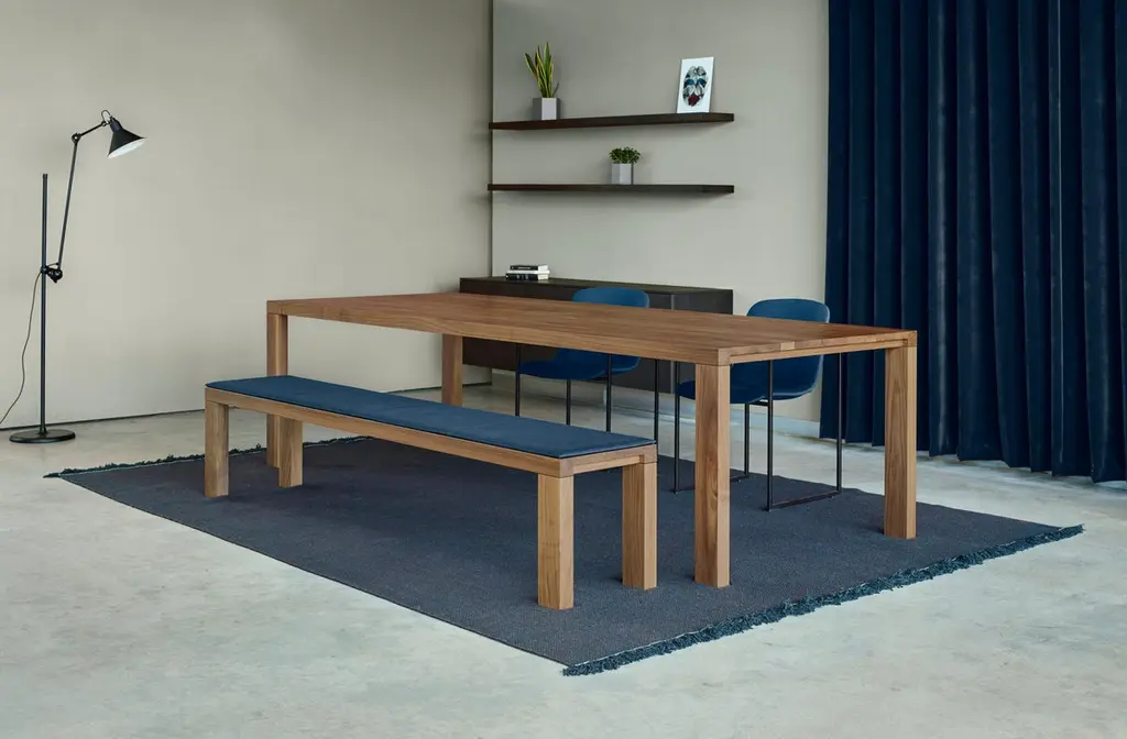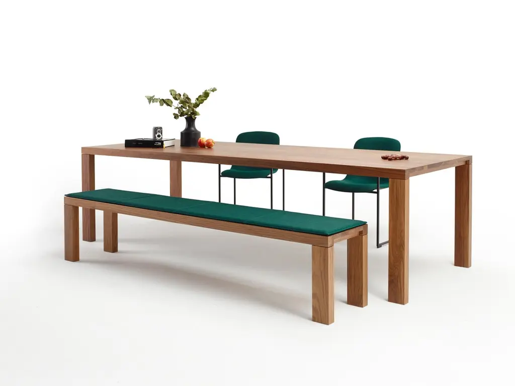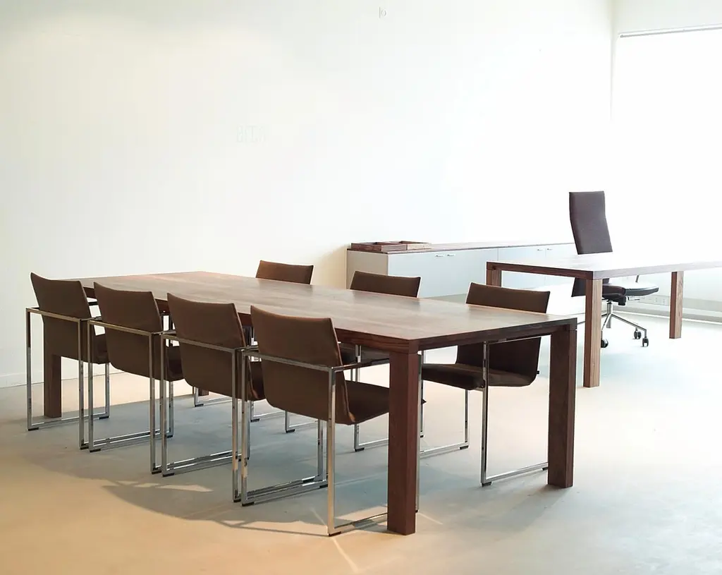 Essenza is a solid wood table with a pure and elegant design. It can also be turned into a high-end desk with a neat cable feed-through, cable management and privacy panel, and completed with a matching set of drawers from our Graphic Module range and cabinets from our Side-Store Office range.Price listed for solid wood size 320 x 105 x 75cm.