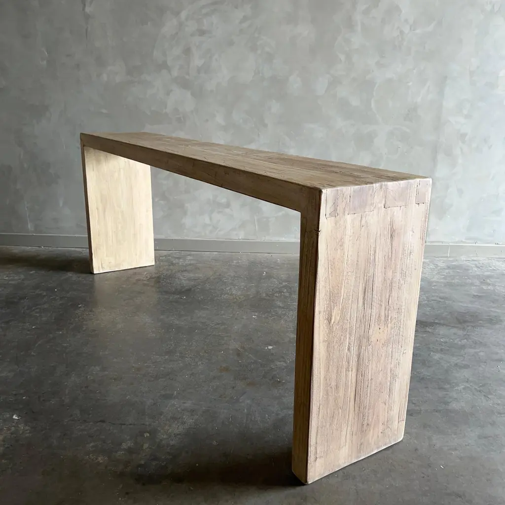 The artisanal construction methods highlight the elm woods beautiful grain pattern & knots and fissures from its past life. The most authentic materials are hand selected, and hours of hand-craftsmanship go into each piece, creating each and every beautiful table, no one is exactly alike. Solid elm wood finished with a natural wax.Finish: Natural Dimensions 96”w x 16”d x 34”h Care Instructions : Avoid direct sunlight; avoid exposure to heat; avoid excessive moisture. Use coasters and trivets to protect the surface from wet or hot cups or dishes. Avoid sharp objects. Address spills immediately by wiping with a soft, dry cloth.