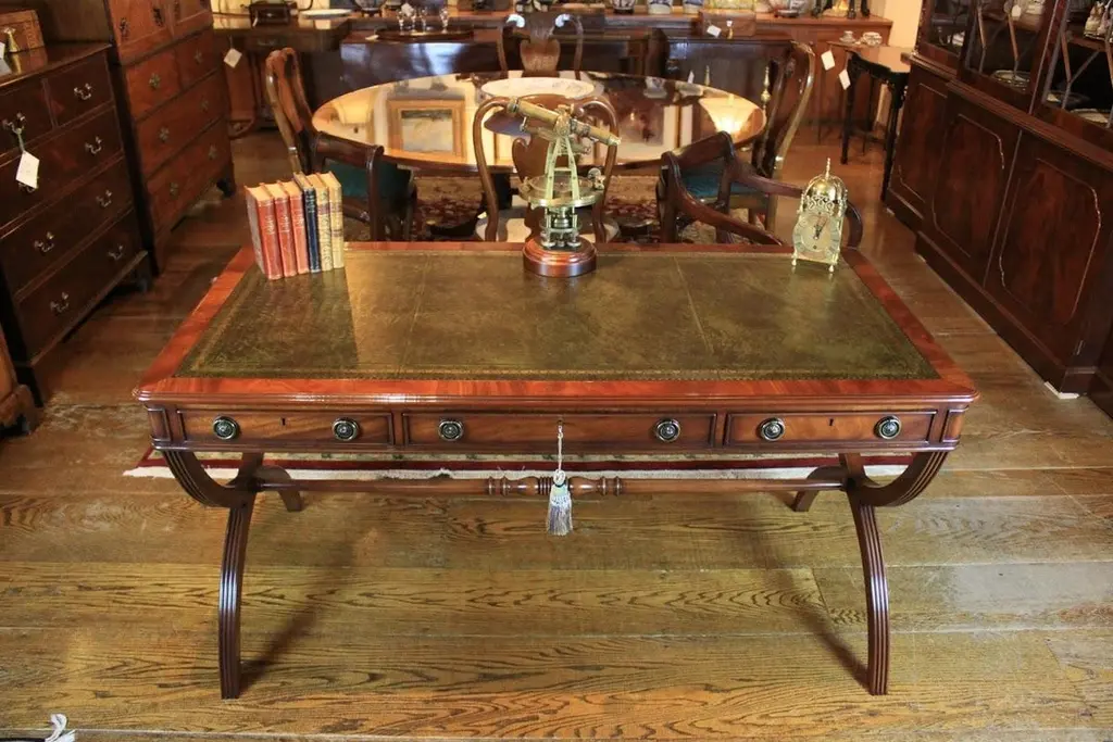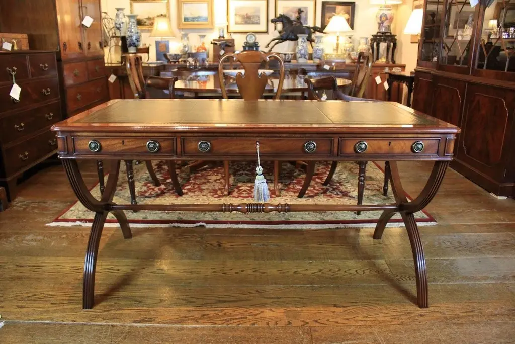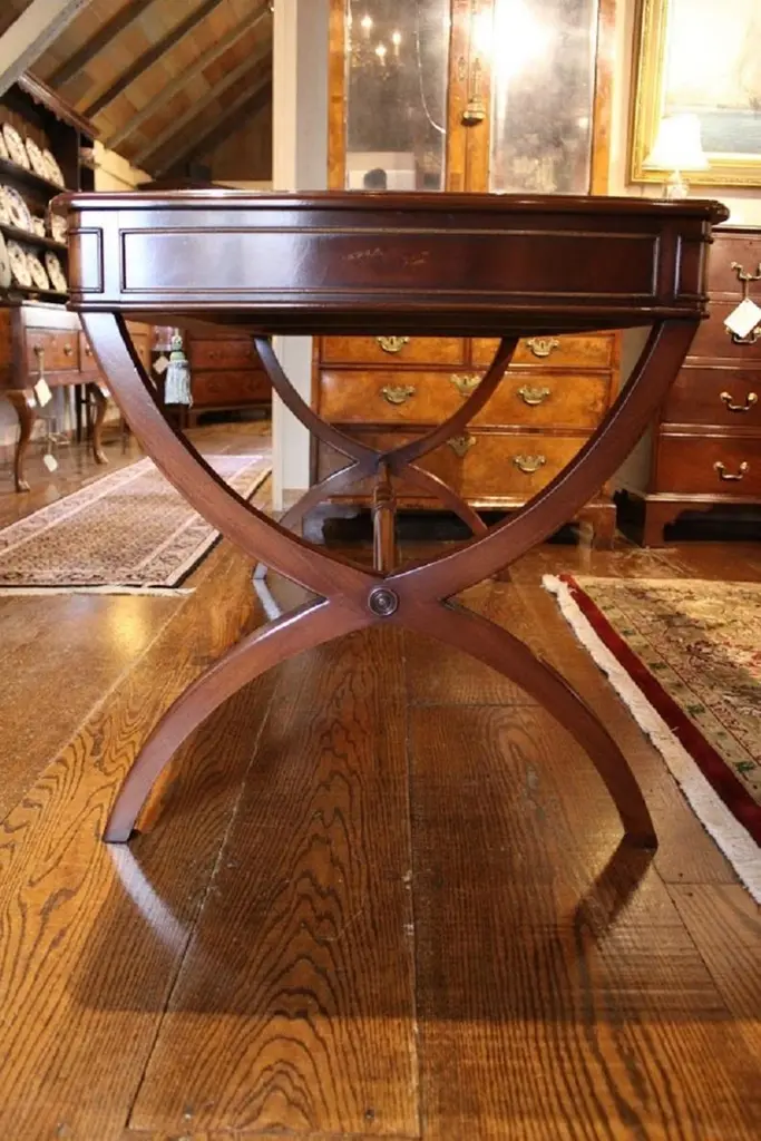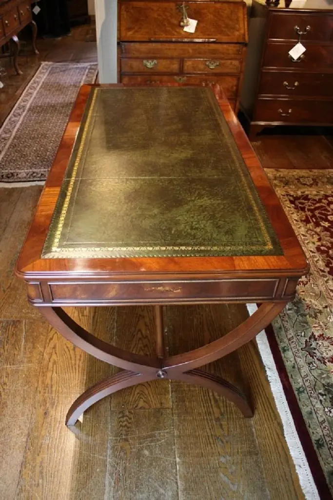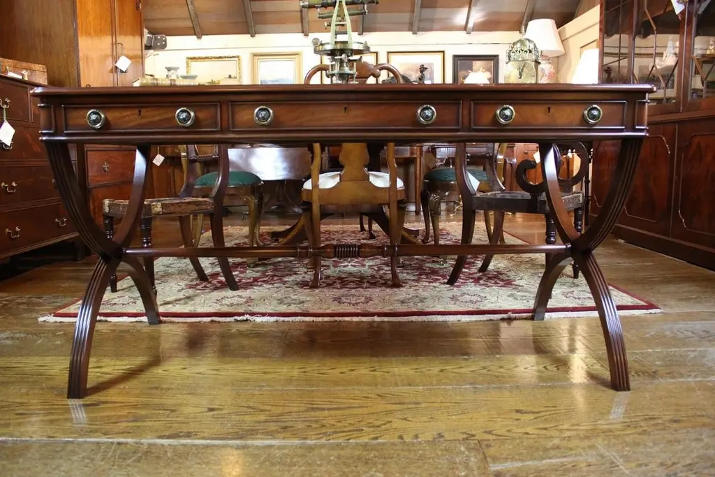 Custom Mahogany Crossed Sabre Leg Writing Table