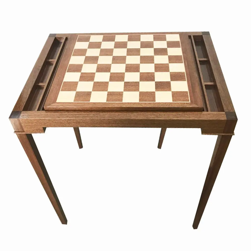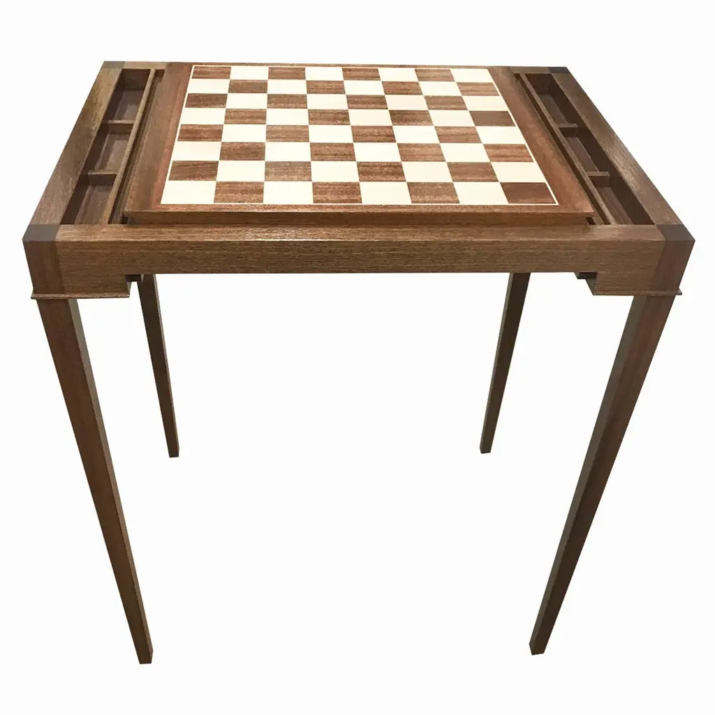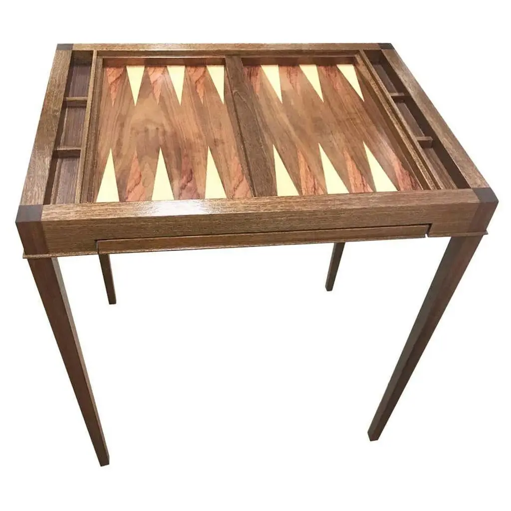 Custom Walnut Game Table With Backgammon And Chess