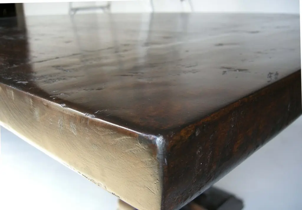 Trestle table in walnut, beautiful top/patina. Top is 1 7/8". Can be made in any size and finish. Made in Los Angeles by Dos Gallos Studio.Custom prices are subject to change. Please inquire.CUSTOM PRICES ARE SUBJECT TO CHANGE DUE TO FLUCTUATING WOOD AND LABOR PRICES. PLEASE INQUIRE BEFORE PLACING AN ORDER. CUSTOM ORDERS ARE NON RETURNABLE. FINAL SALE