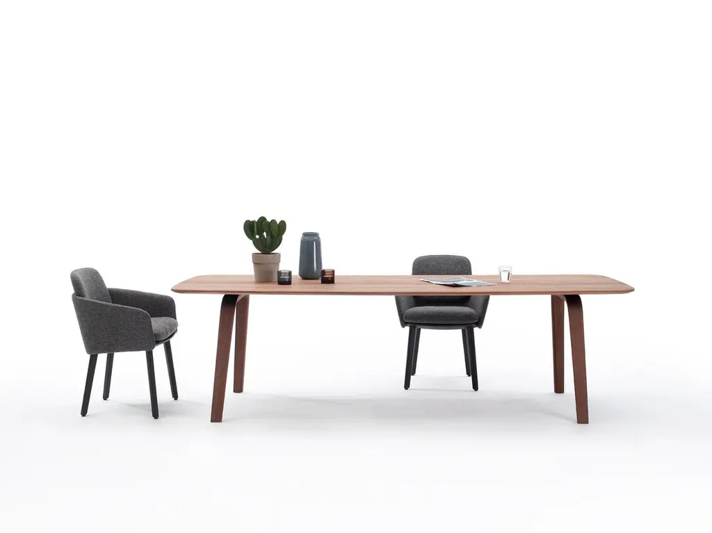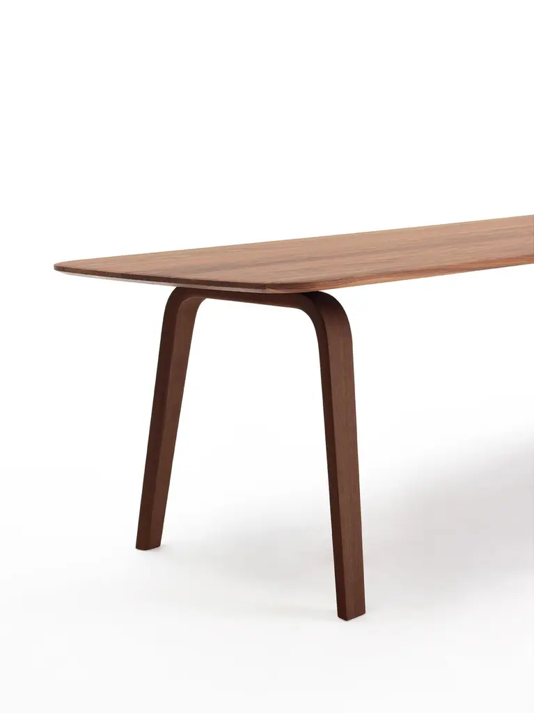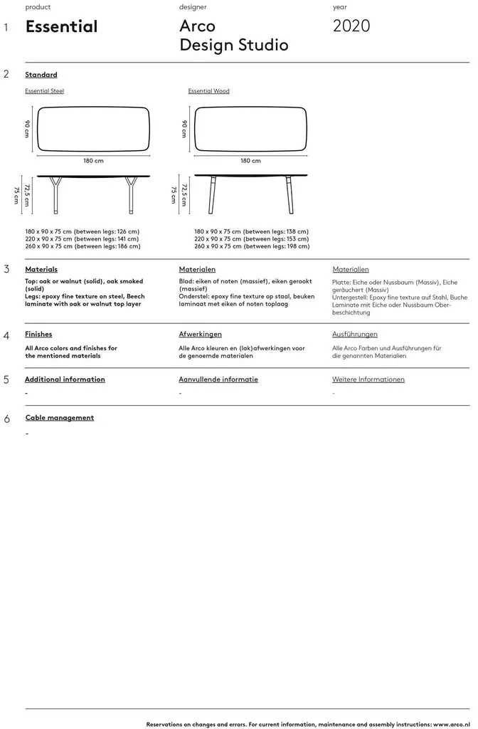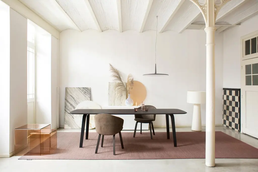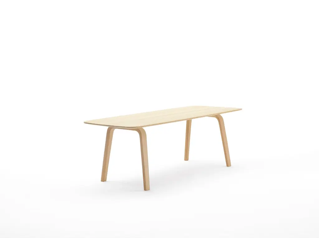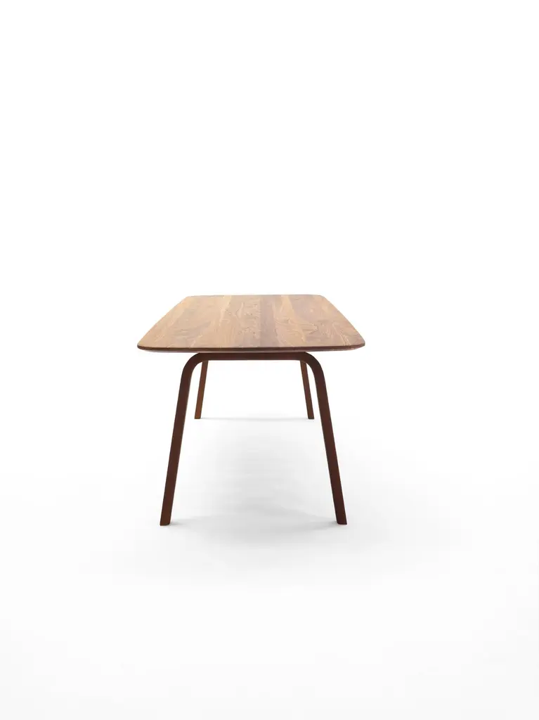 Designed by Gudmundur Ludvik and Arco Design Studio, this table is available in two variations: wood and steel. The essential wood comprises a solid wood tabletop (oak or walnut) on a plywood trestle (beech with oak veneer or walnut veneer). The frame can be swapped as needed. The essential steel also features a solid wood tabletop (oak or walnut), but this time its trestle is made from steel with a fine epoxy textured finish. Both essential wood and essential steel are intended to reduce environmental impact. For example, they’re easily recycled or refurbished, use water-based lacquer, and employ PEFC certified wood. They work well together with Arco’s close stool.