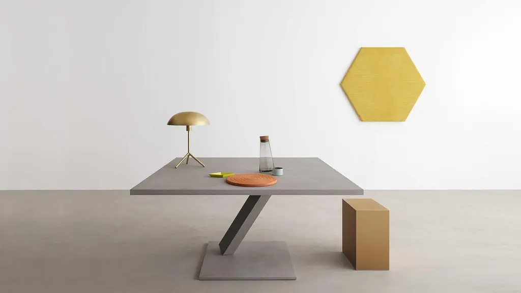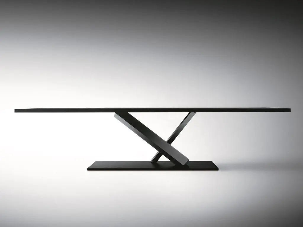 Element is a symbol of purity and poetry,the essence of the visionary designer Tokujin Yoshioka's style.The heart of the Element project lies in the single central support for the table, a metal parallelepiped that is reminiscent in its form of the minerals and quartzes found in nature, positioned at a slant, teetering between the base and the top as though almost challenging the laws of gravity, magically suspended between earth and sky.Disassembling table with steel frame, metal or MDF top, in lacquered or materic spread by hand finishings.The raw iron finish is achieved via a double coat lacquering, followed by a further handmade sanding treatment. Stone finishes are obtained by manual application of paste.Metal finishes are obtained by manual application of micronized metal powder mixed with resin.Marble finishes are obtained by manual application of micronized marble powder mixed with resin.