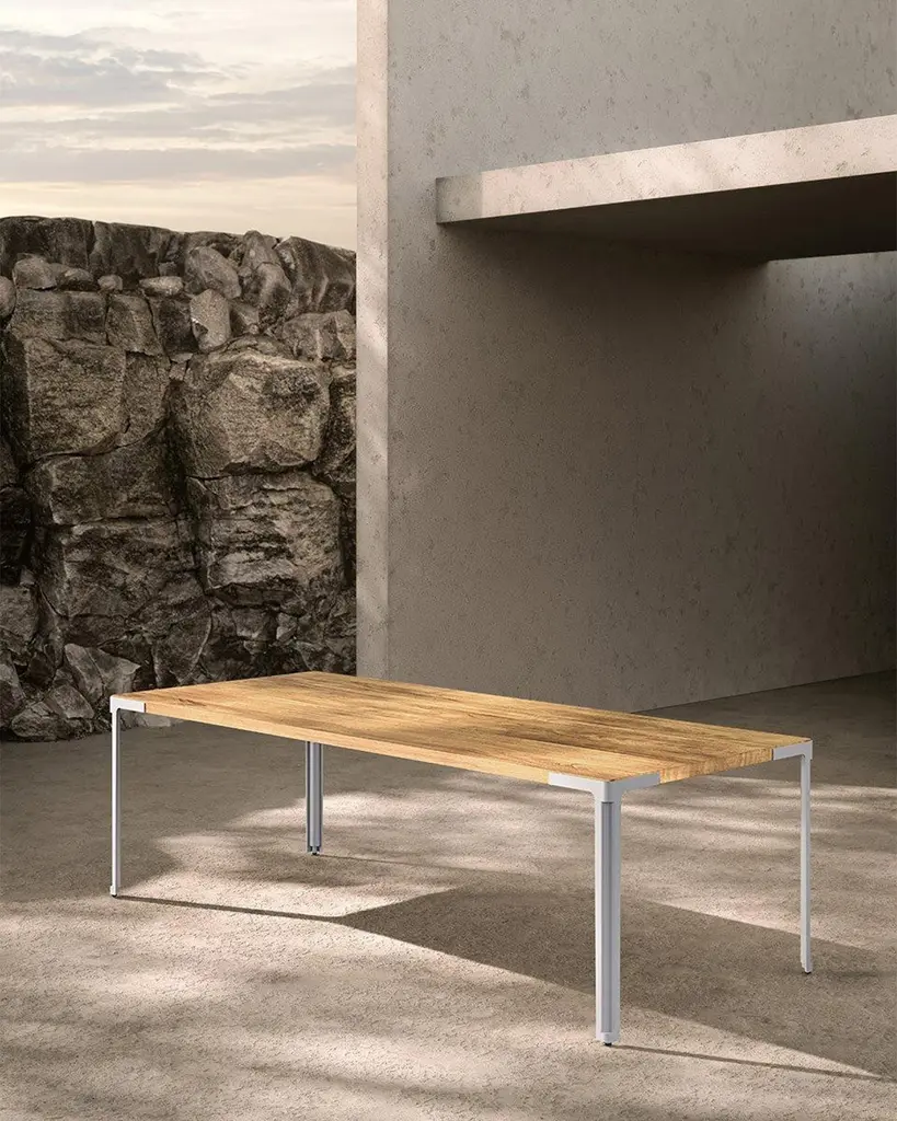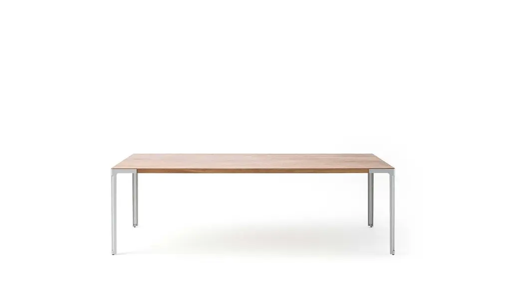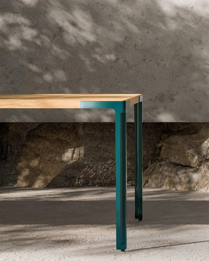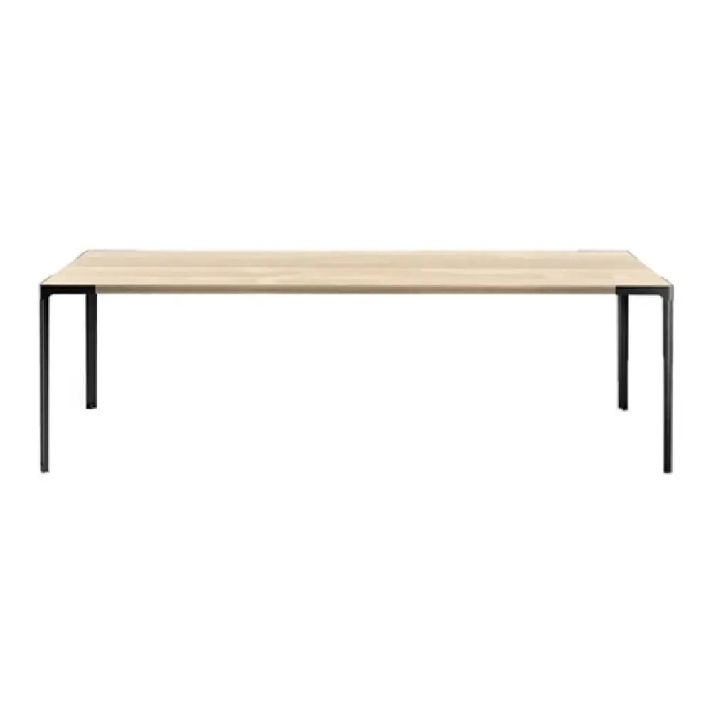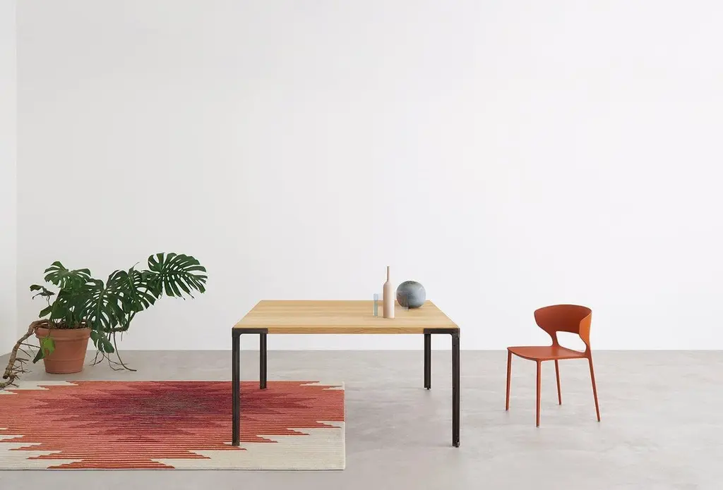 With the bold look of its sawn-effect oak top, the fan table displays a unique, precise style concept.The legs, too, convey an exclusive industrial language to enhance the uniqueness of this design.A clear concept gives life to a rigorous yet expressive collection.“The leg consists of a simple plate that a fold and a counterfold make structural, becoming its characteristic detail, taking on a very interesting industrial language”.Disassembling table with legs of metal sheet lacquered raw iron. Top made of solid oak wood with "sawn surface” finishing.Table with metal sheet legs.Solid wood sawn oak top, 40 mm thickness.The raw iron finish is achieved via a double coat lacquering, followed by a further hand-made sanding treatment.