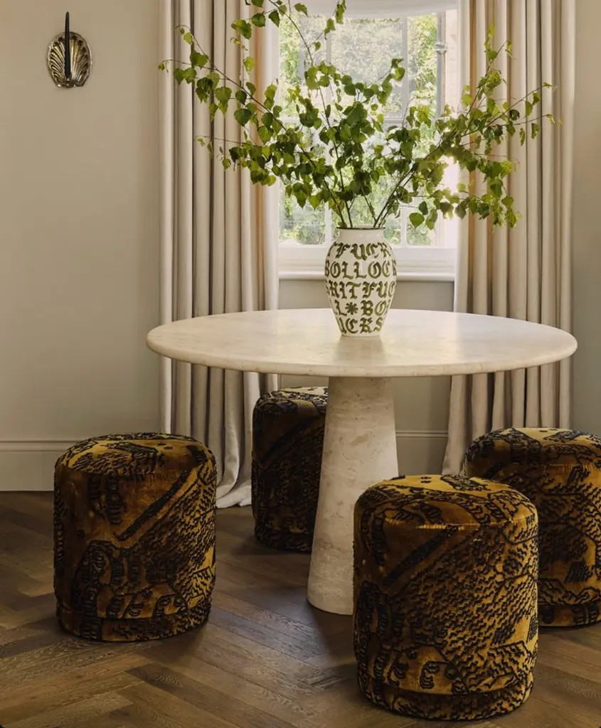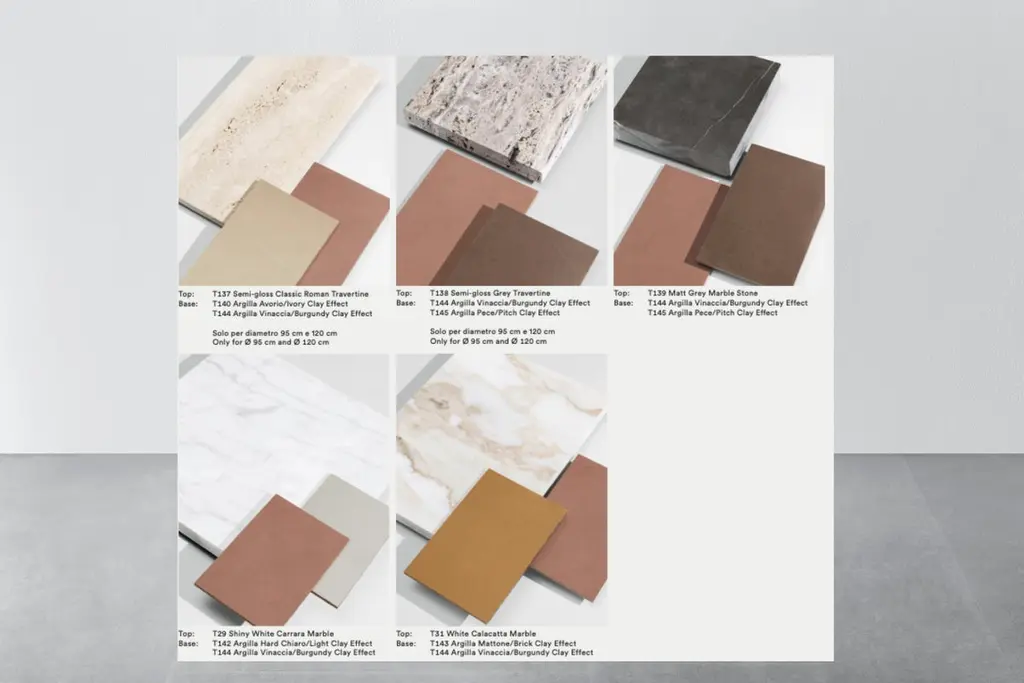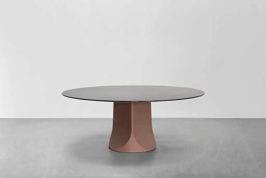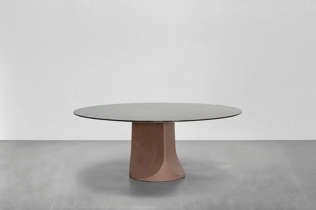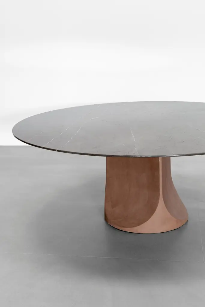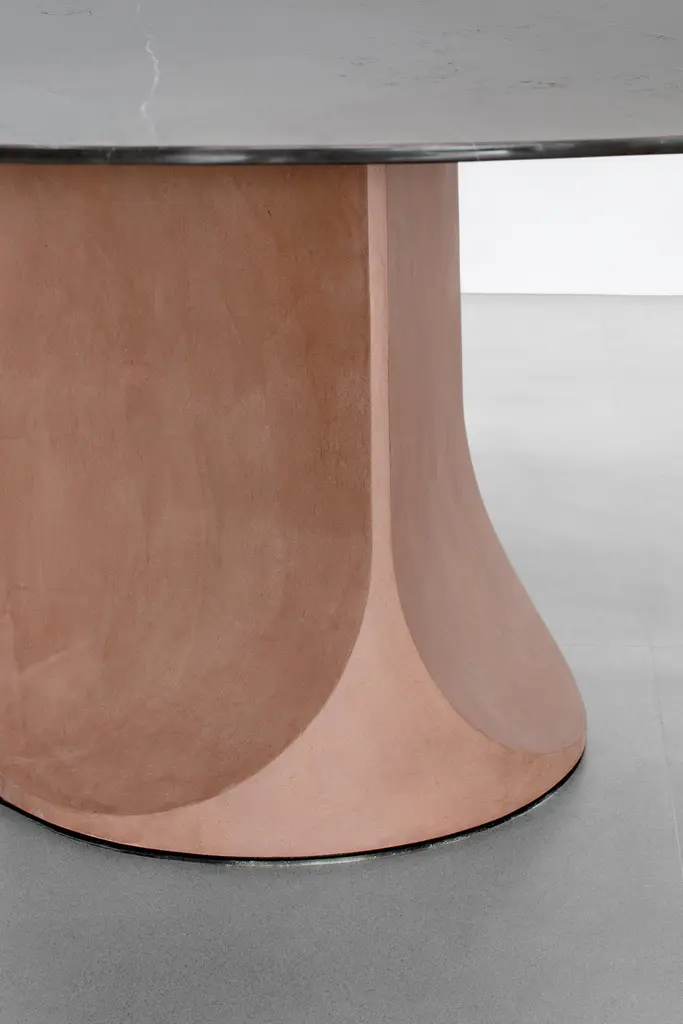 Togrul is a table with a round top made of marble.? A totem that transforms any room into a temple of conviviality.? With Togrul, designer Gordon Guillaumier goes beyond the limits of matter to create a table suitable for homes and contract spaces alike.? Available in different sizes, the bases in rigid polyurethane are finished in clay, made from 100% raw earth and applied by hand by master craftsmen.? The marble top is available in a round version with different finishes.? Sinuous and organic like an object shaped by nature.? Solid and unmovable like the monuments of ancient civilisations.? Togrul’s sculptural base is the perfect synthesis of energy and solidity.?Sizes 160cm, 180cm, 95cm & 120cm.