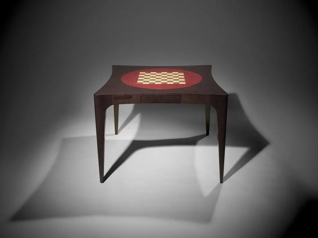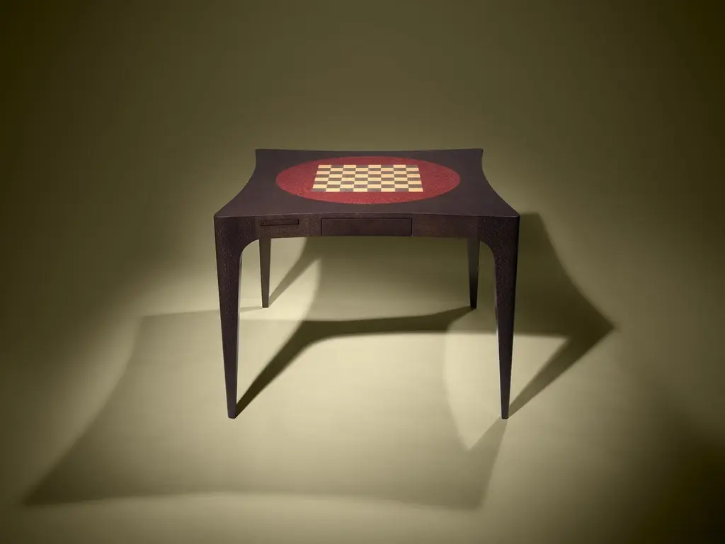 Dama Contemporary And Customizable Card Table With Inserted Marketed Chessboard