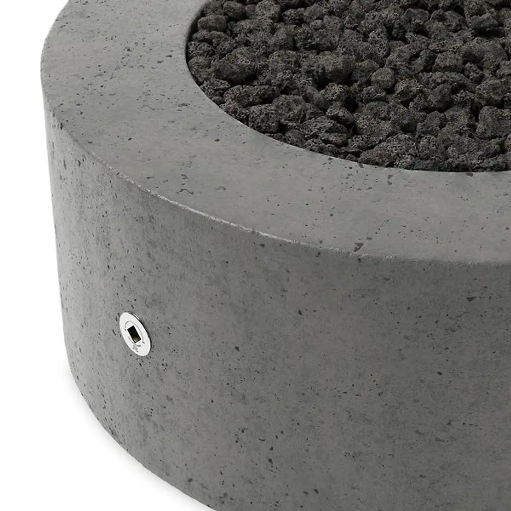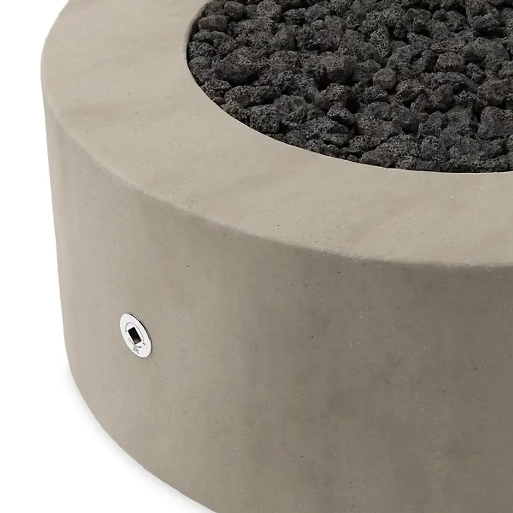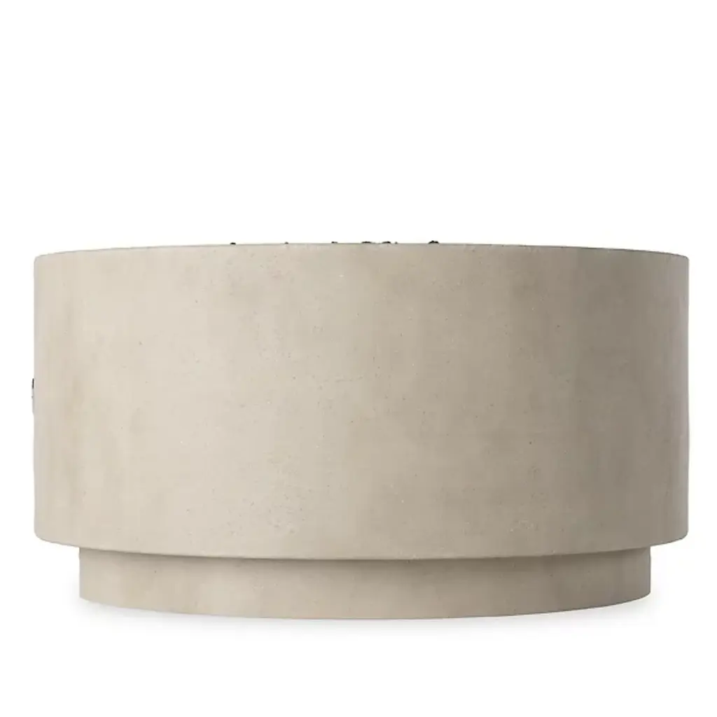 The Damian Outdoor Fire Table from Four Hands is crafted from durable concrete and features a drum-shaped design. Damian effortlessly blends industrial and contemporary styles, adding charm to your outdoor space. Boasting a 65,000 BTU rating, this fire table delivers impressive heat output, providing warmth and comfort during outdoor gatherings. Filled with lava rocks, Damian creates a mesmerizing display. It boasts a key valve ignition. The propane tank enclosure is sold separately.