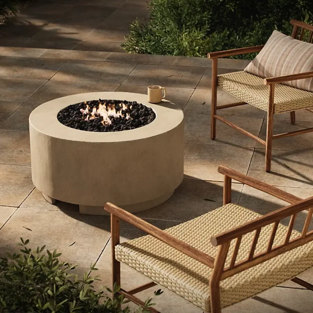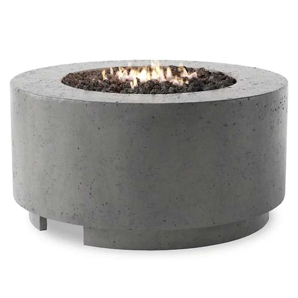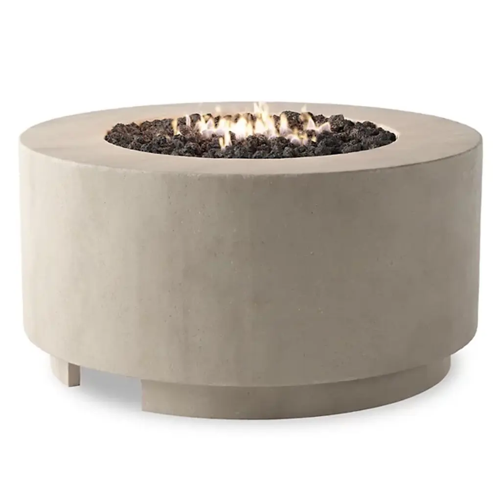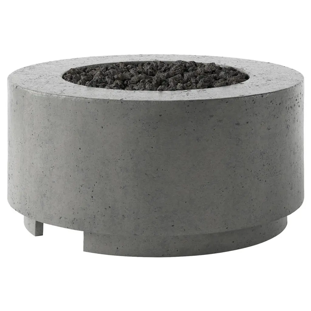 The Damian Outdoor Fire Table from Four Hands is crafted from durable concrete and features a drum-shaped design. Damian effortlessly blends industrial and contemporary styles, adding charm to your outdoor space. Boasting a 65,000 BTU rating, this fire table delivers impressive heat output, providing warmth and comfort during outdoor gatherings. Filled with lava rocks, Damian creates a mesmerizing display. It boasts a key valve ignition. The propane tank enclosure is sold separately.