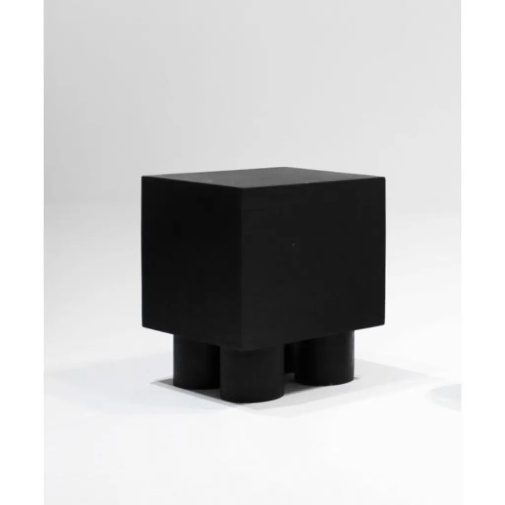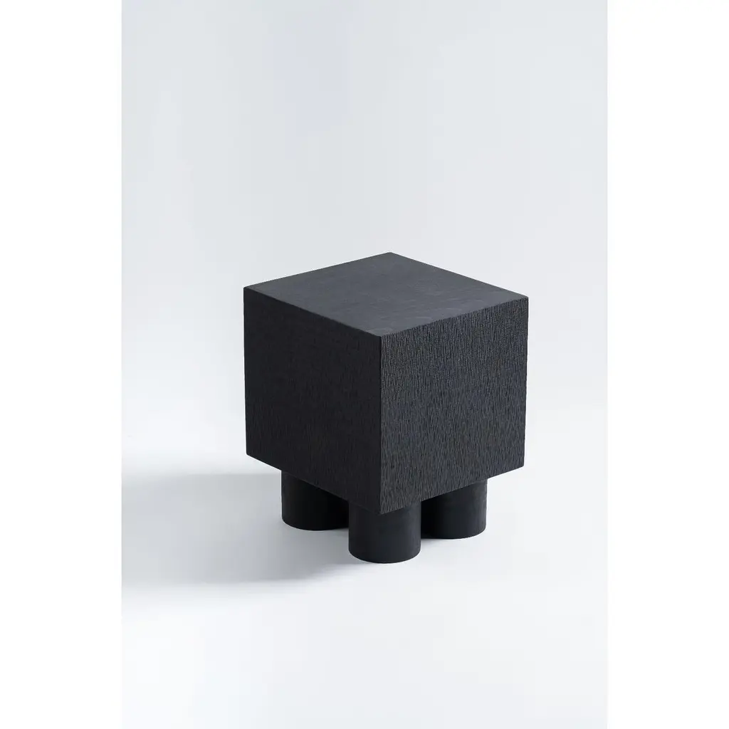 Dark Black Wood Seating Occasional Table Time of Action No. 20-2, Chaeyoung LeeMaterials: Ebonized and carved woodDimensions: 34,5 x 32 x 41 cmEbonized and carved beech, various size.Customization is available. Please contact us!Time of Action is a minimal and carefully crafted furniture collection created by South Korean-based designer Chaeyoung Lee.Time of Action series uses ebonizing and carving techniques that include time and experience to faithfully archive small parts of the present. It was intended to weigh the momentary process with ebonizing, which slowly reveals dark black through several coats, and carving, which forms a new texture with repetitive body movements. The layer of time completes a direct tactile experience beyond reason.Hoping that we will stay more faithful to our lives by focusing on the process before the outcome, the time that's becoming, and "here and now."