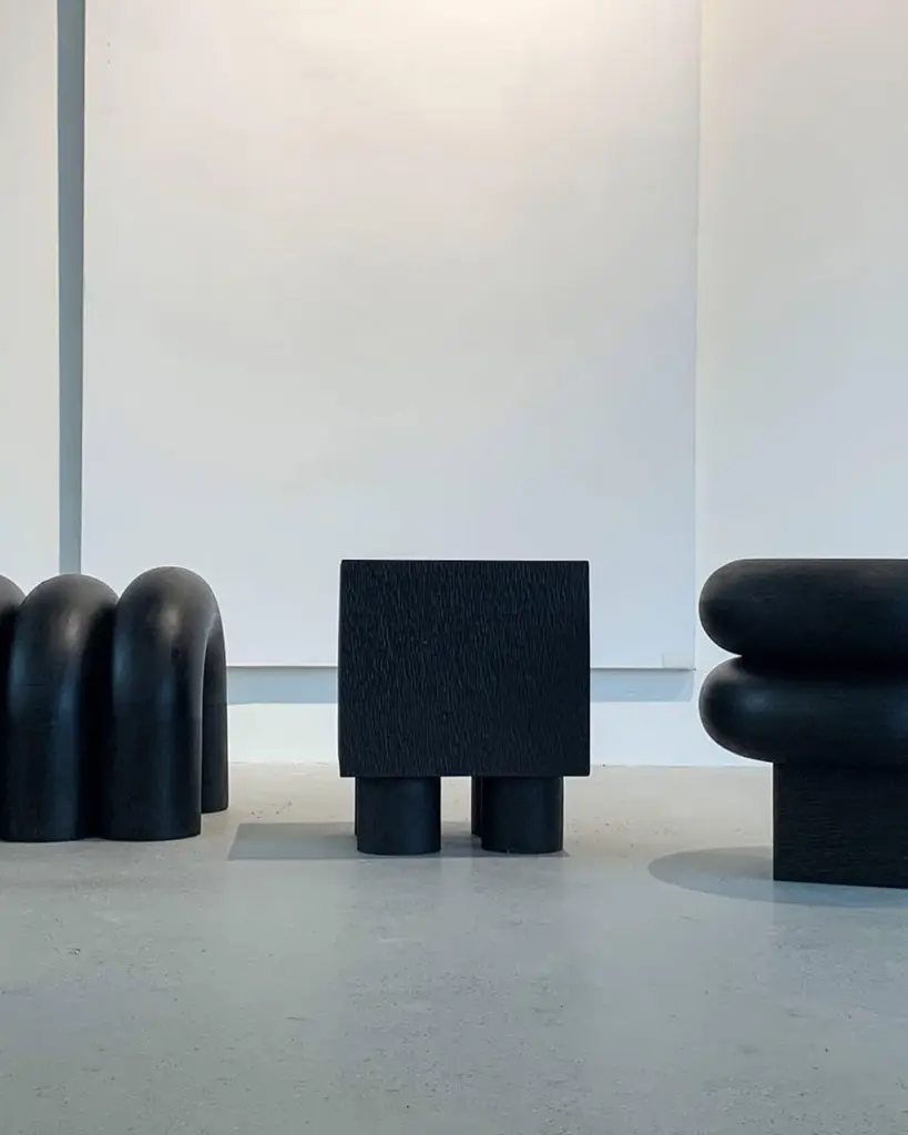 Dark Black Wood Seating Occasional Table Time Of Action No. 20-2, Chaeyoung Lee